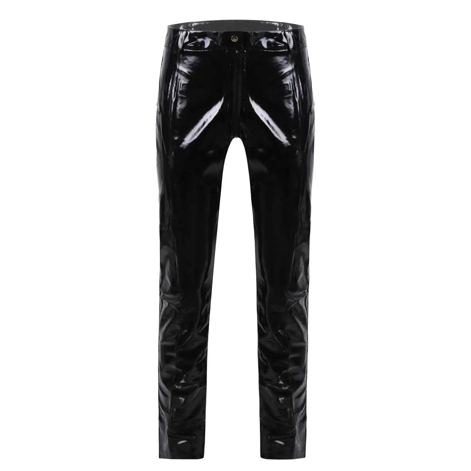 Moto Pants Leather Zipper Crotchless Pants Mens Clothing Fashion Wet Look Nightclub Performance Costumes Wet Look Trousers