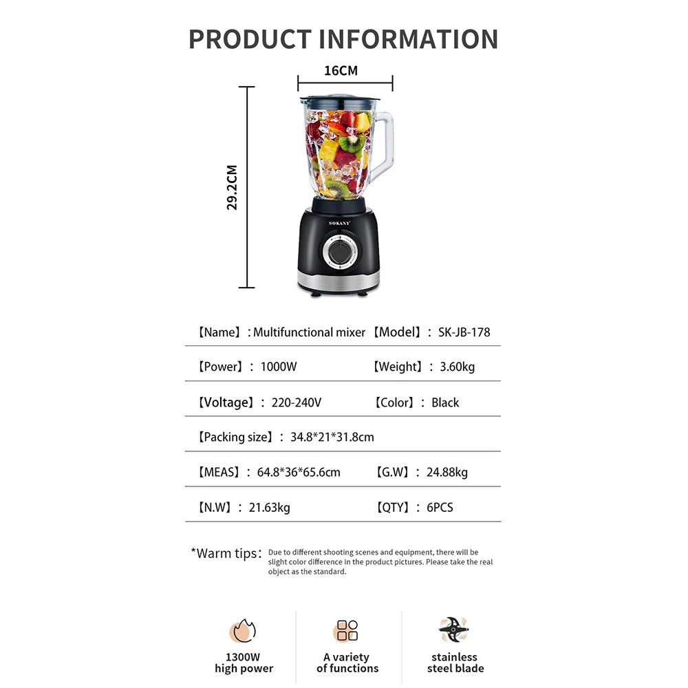 Multi-function Blender Food Grinding Kitchen Crushing Ice Juicer Suitable for Milkshakes and Fruit Drinks, Meats, Sauces