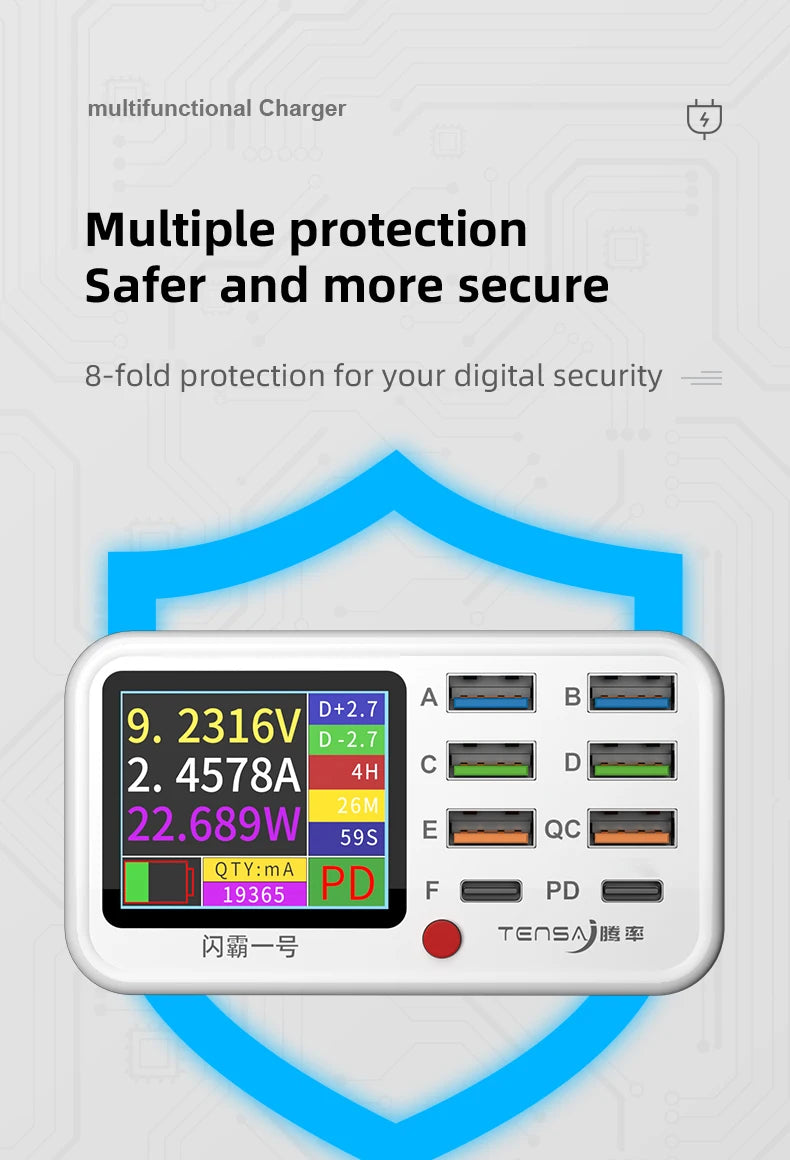 Multi functional 8-port USB Wireless Fast Charging Station Visual Current Detection Charger For Mobile Phone iPad Flash Charging