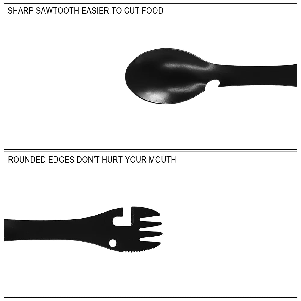 Multi-functional Outdoor Survival Tools 5 in 1 Camping Hiking Gear Practical Fork Knife Stainless Steel Spoon & Bottle Opener