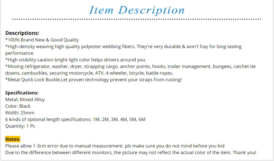 New 6M*25mm Black Tie Down Strap Strong Ratchet Belt Luggage Bag Cargo Lashing With Metal Buckle Dropshipping