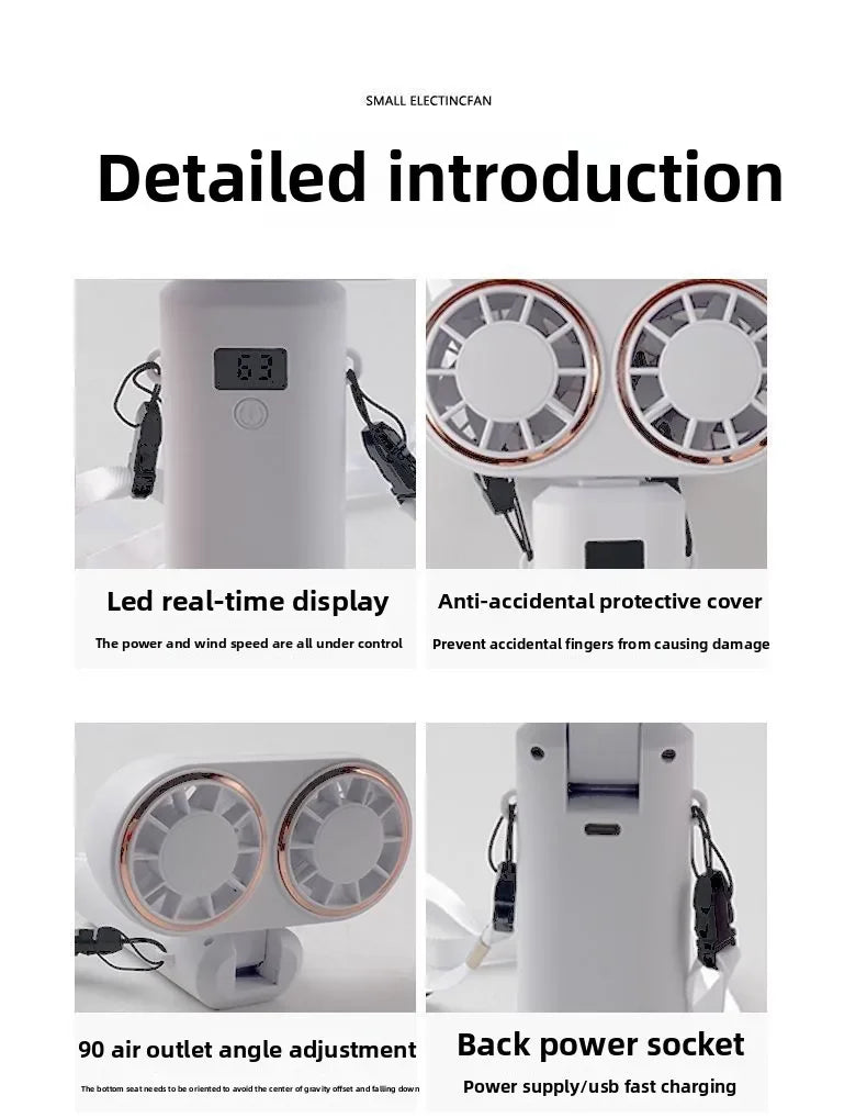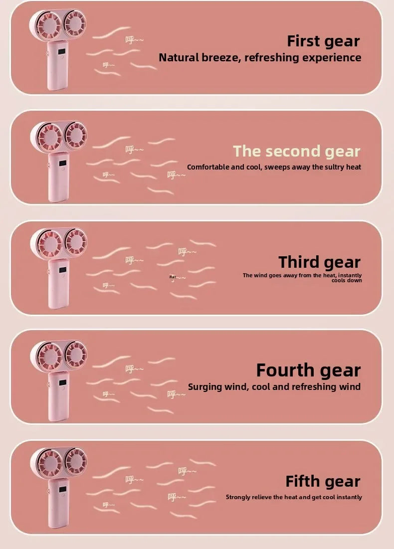 New Handheld USB Small Fan Double-headed Handheld Fan with Long Battery Life Mini Rechargeable Portable Electric Fan.