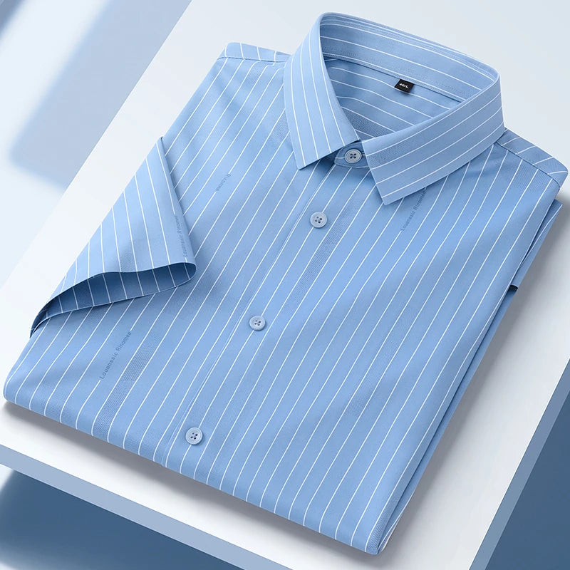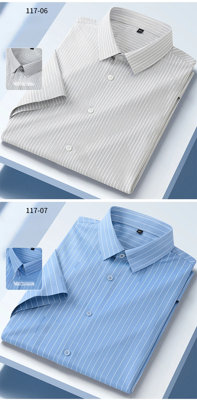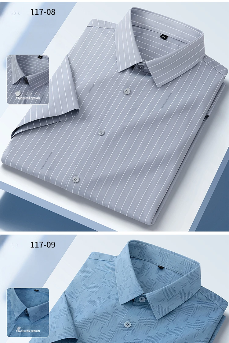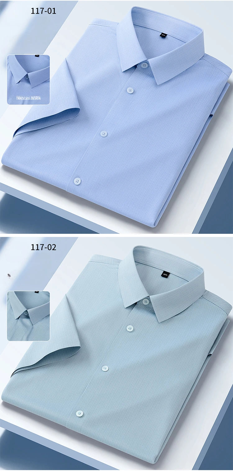 New in shirt summer short sleeve shirts for men slim fit formal plain shirt soft office striped top wrinkle free elastic clothes