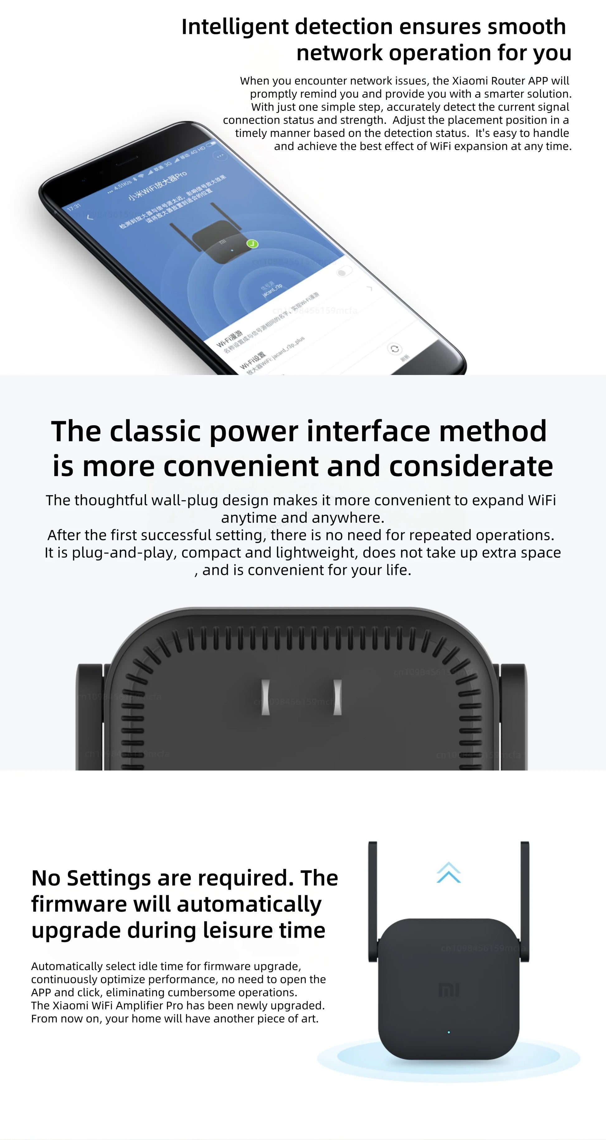 New Original Xiaomi Wifi Amplifier Pro 300M 2.4G Repeater Network Expander Range Extender Roteader Mi Wireless Wi-Fi Router