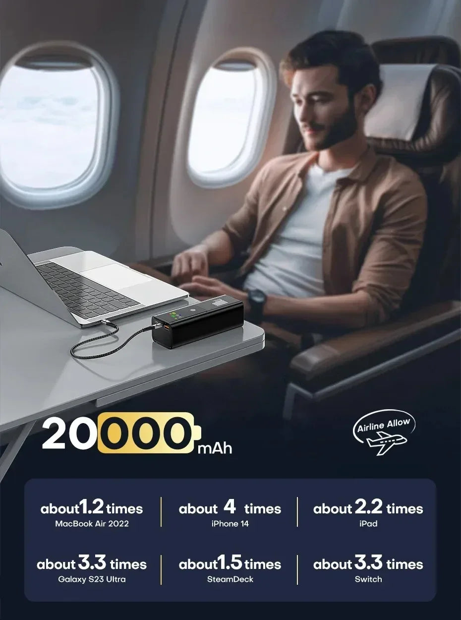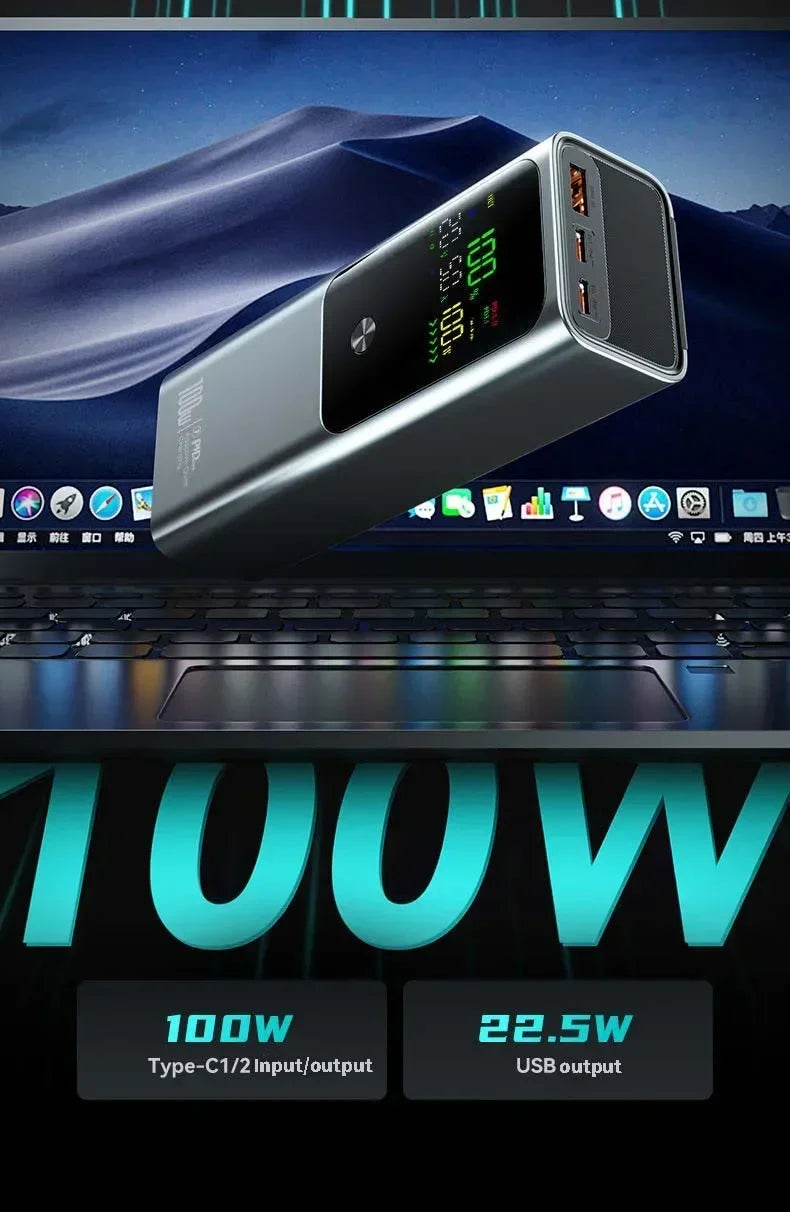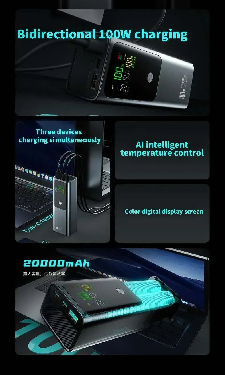 New PD100W Fast Charging Power Bank 20000mAh High Capacity Portable Charger External Spare Battery Laptop Powerbank for IPhone
