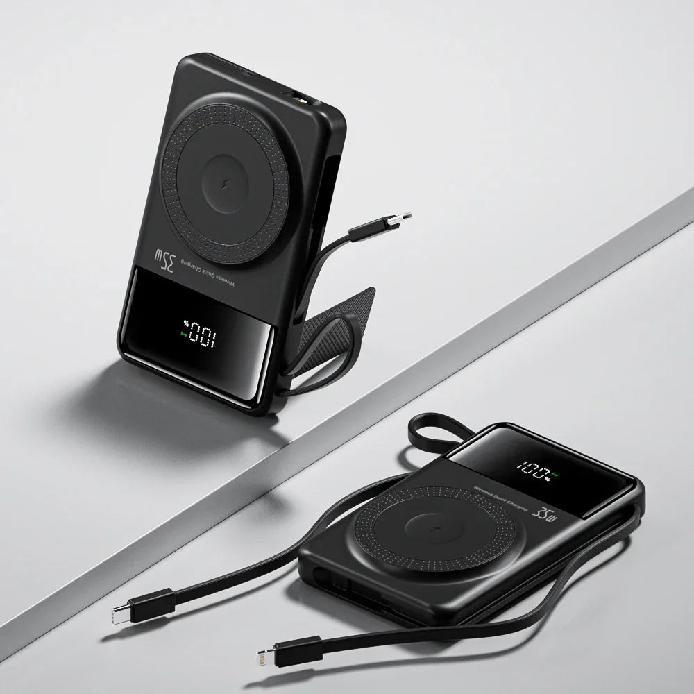 New Portable Built in Cables Magnetic Wireless Power Bank PD35W Fast Charging 20000mAh Large Capacity Powerbank for iPhone 16 15
