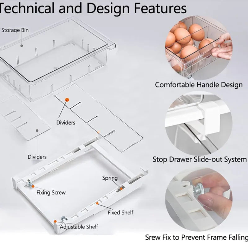NEW Refrigerator Drawer Plastic Clear Fridge Organizer Slide Under Shelf Drawer Box Rack Holder Kitchen Fruit Food Storage Box