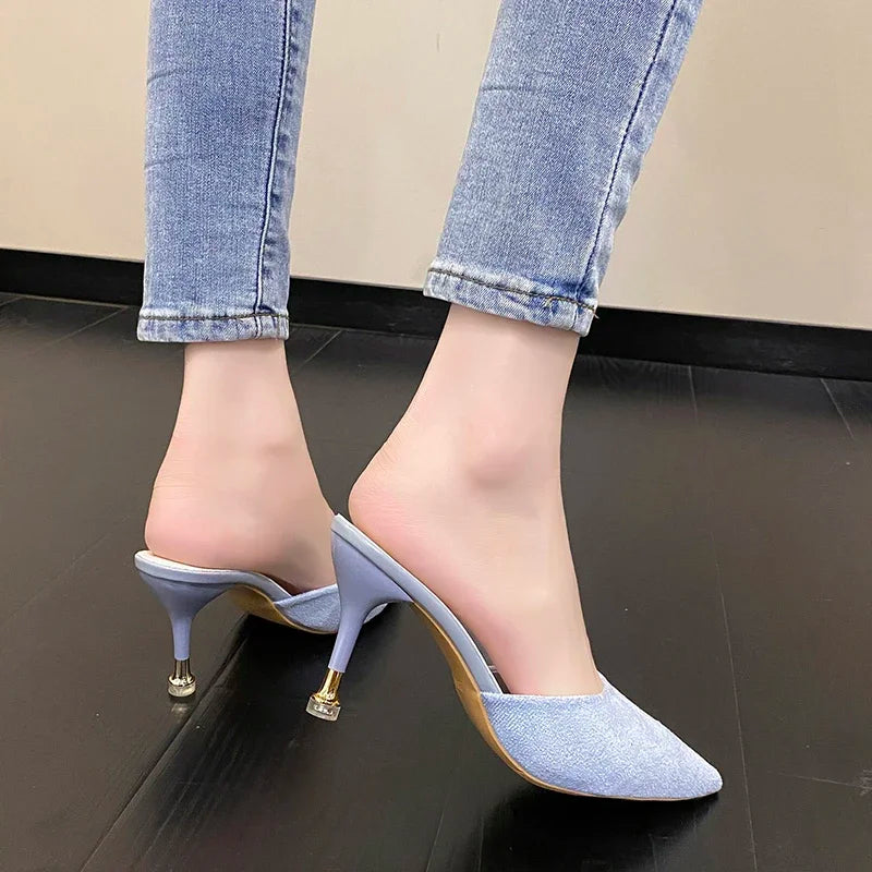 New Women's Slippers High Heel Closed Pointed Toe Shoes Sexy Ladies Heeled Sandals for Women