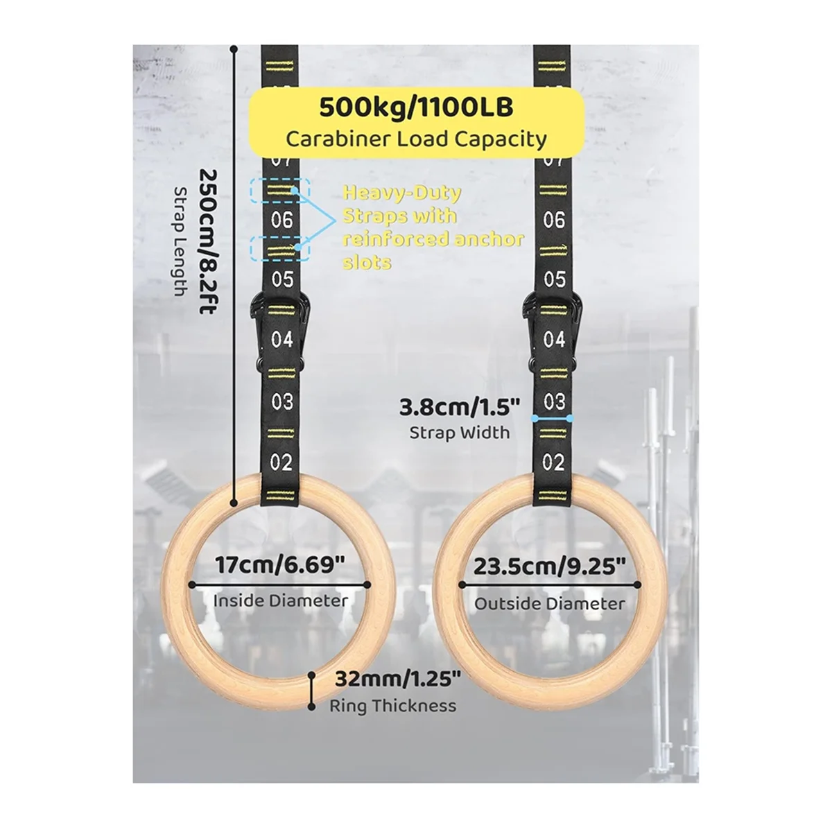 New Wooden Gymnastic Rings Adjustable Straps Door Anchor Foot Straps for Bodyweight Fitness
