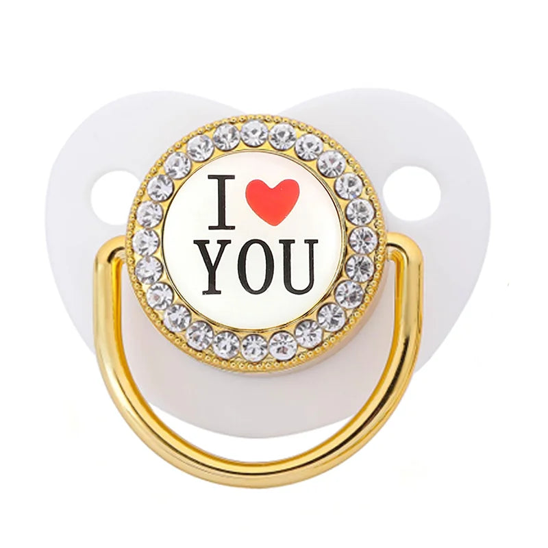 Newborn Pacifier Baby Shower Gift Bling Baby Dummy Silicone BPA Free Infant Nipple New Born Pacifiers For Babies I Love Mum Dad