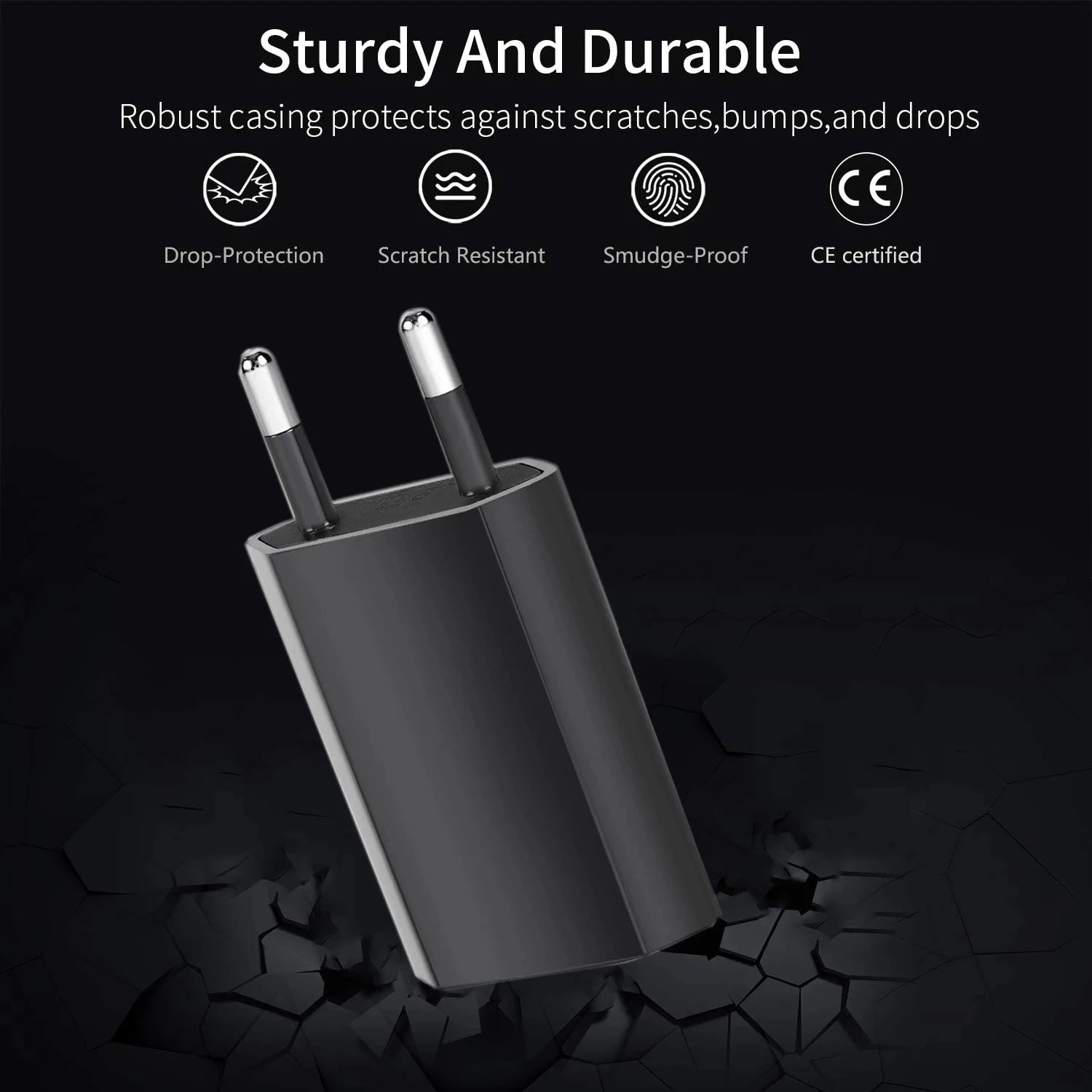 NNBILI 1-5Pcs Black Universal 5W EU Plug Travel USB Wall Charger 5V/1A Rapid Charging For iPhone 7 8 Plus Redmi Phone AC Adapter