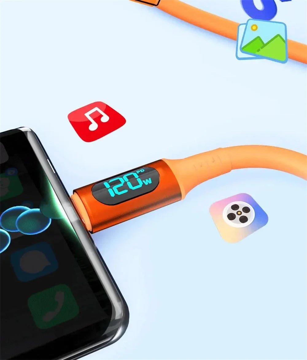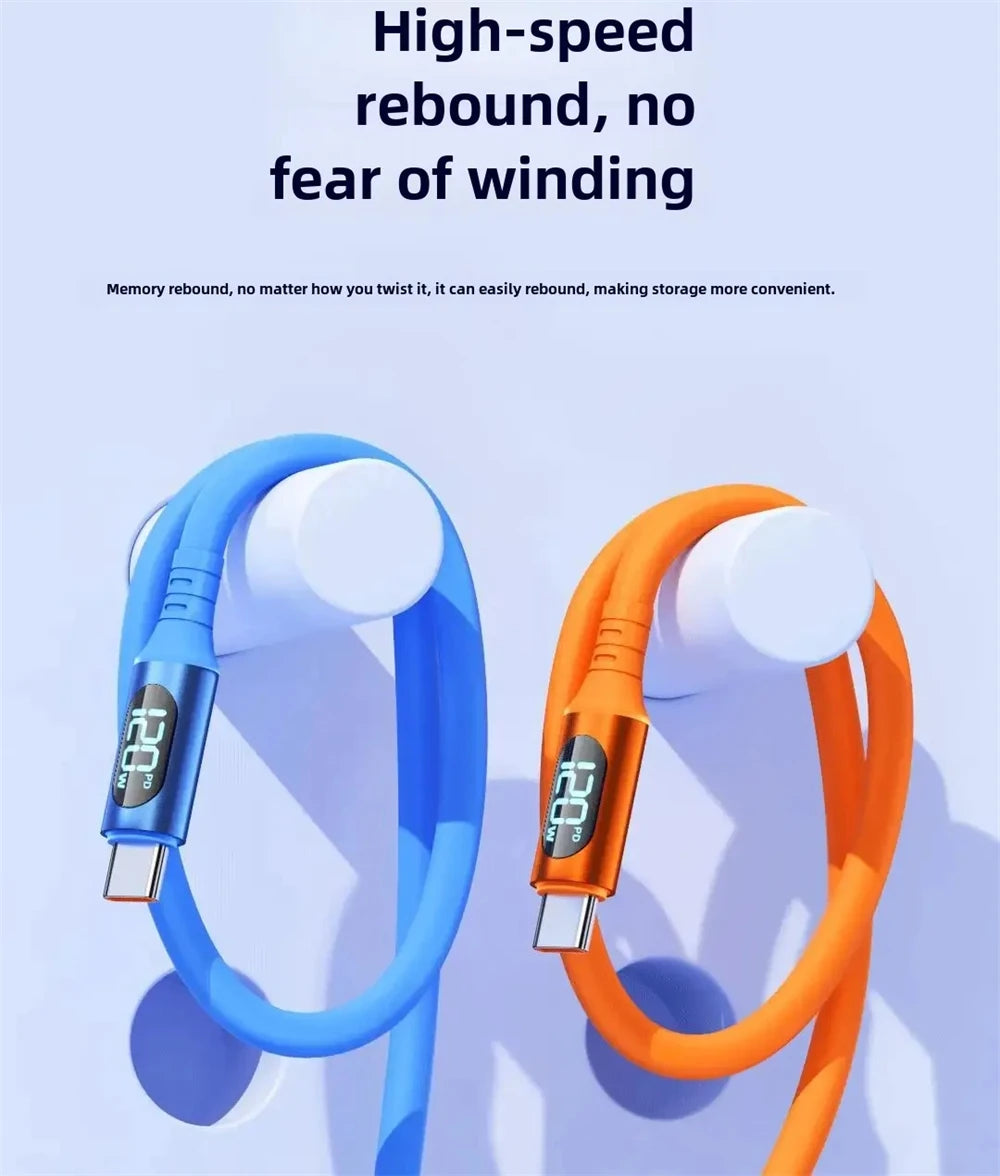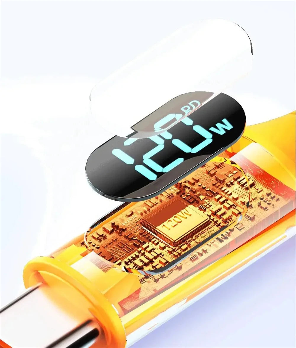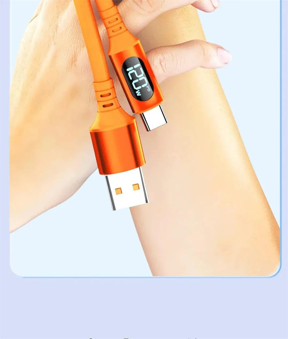 NNBILI 120W 6A Fast Charge USB Type C Quick Charge Cable For Huawei P70 Samsung OnePlus Realme Phone LED Digital Display Cables