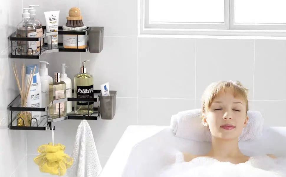 No Drilling Stainless Steel Triangle Double Layer Shelf for Bathroom Balcony Kitchen Corner Storage Space Saving Durable Design