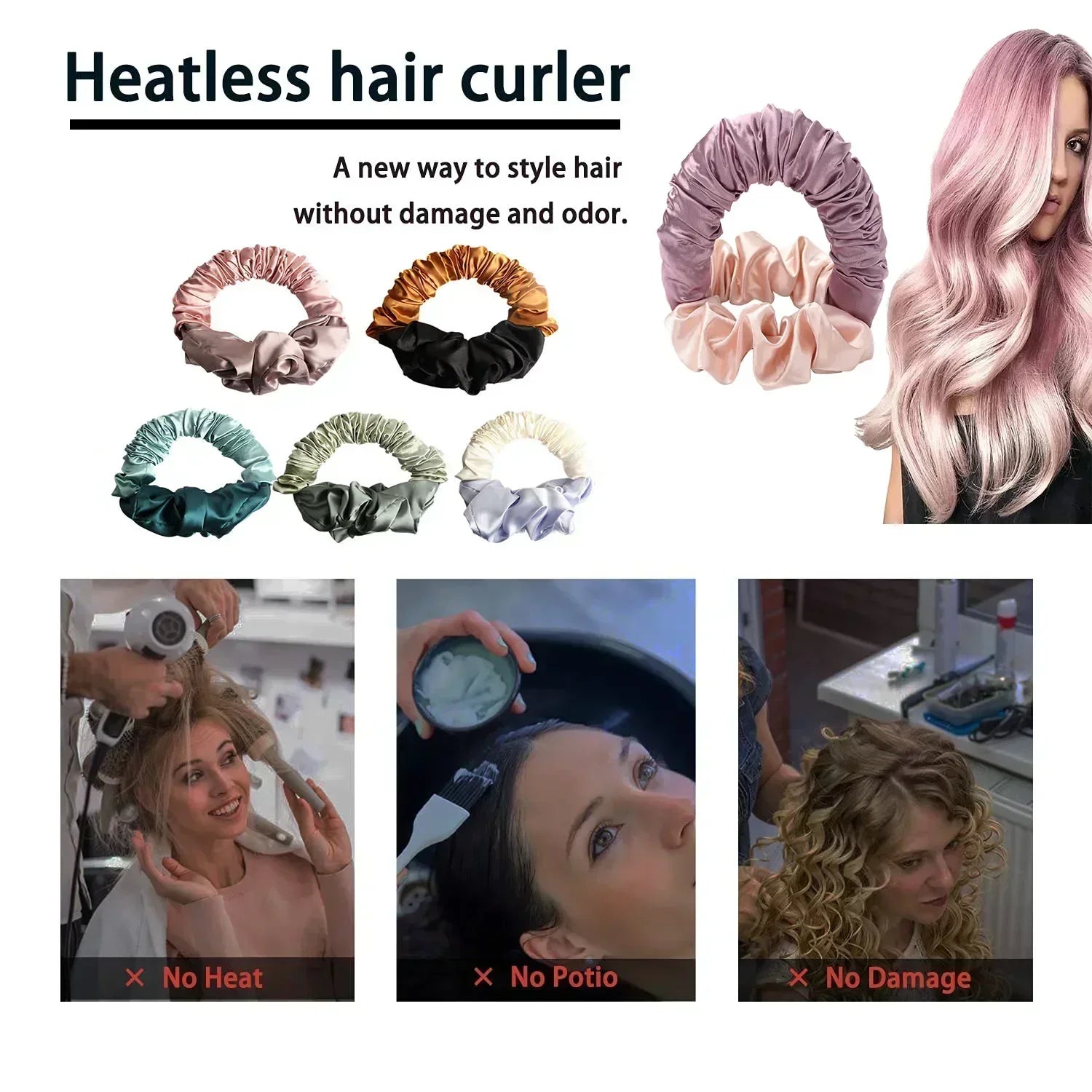 No Heat Soft Hair Curlers Lazy Hair Rollers Heatless Curling Rod Headband Sleeping Silk Curls Ties Perm Rods Hair Styling Tools