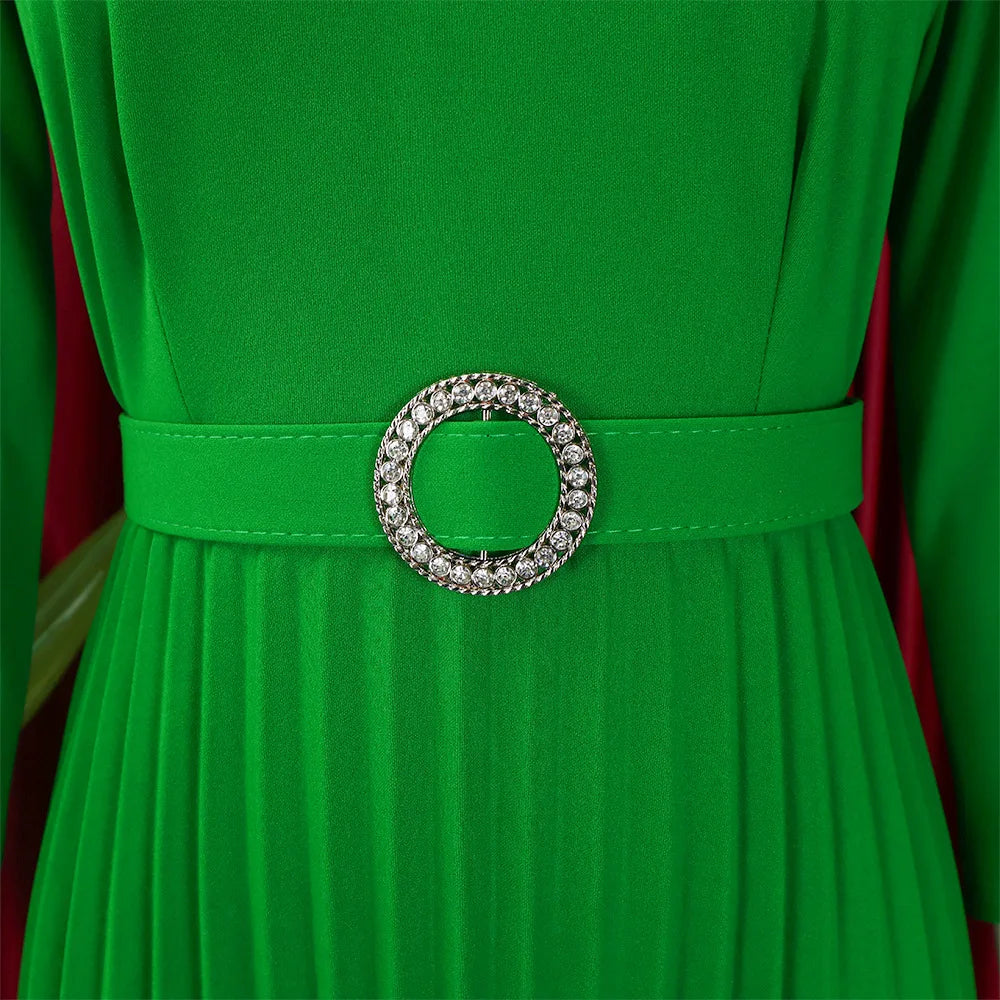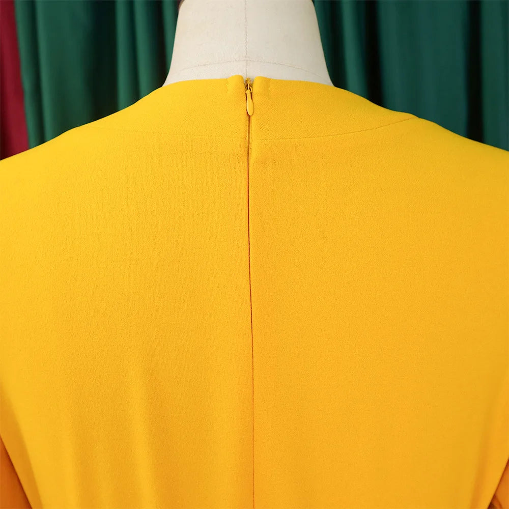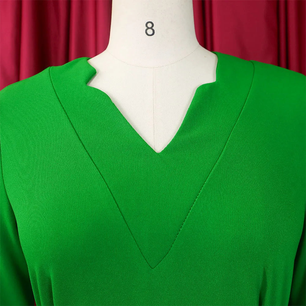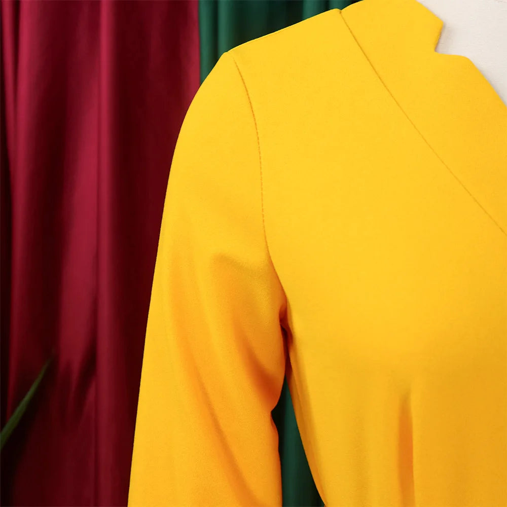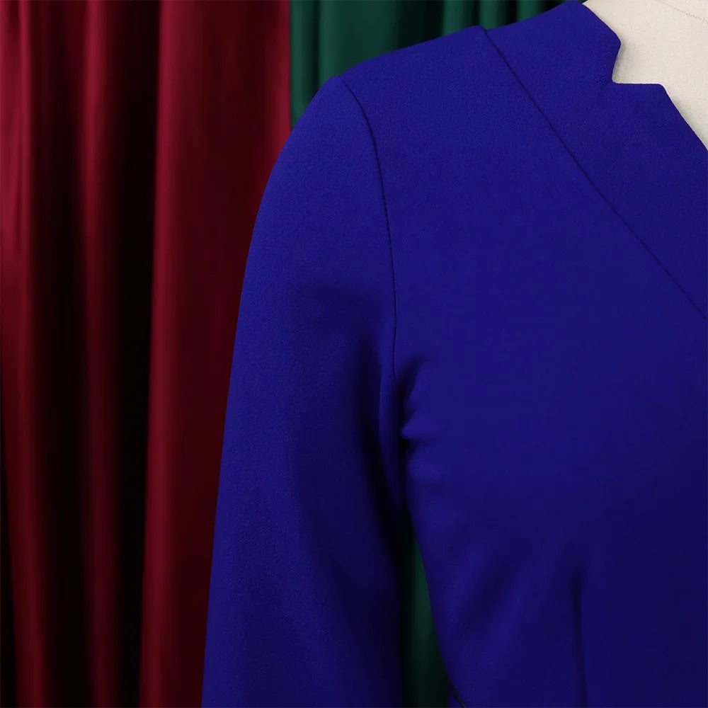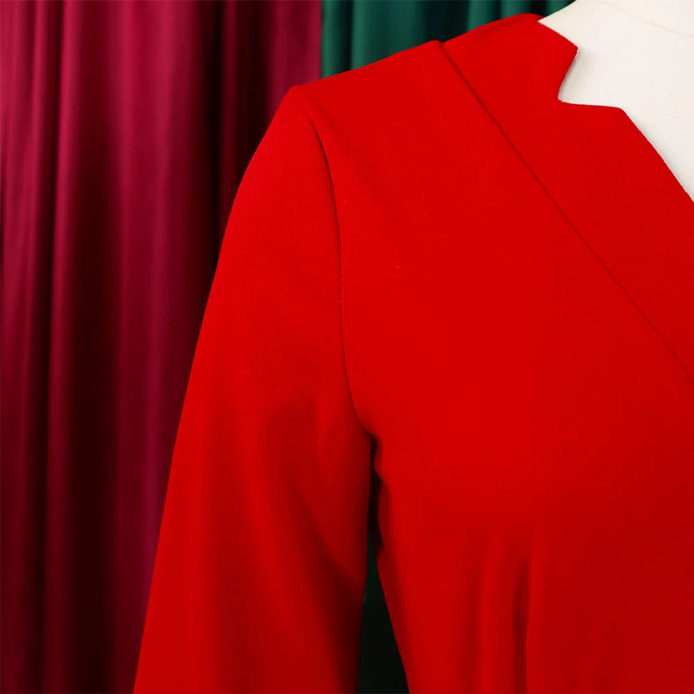 Office Dresses for Women V Neck Full Sleeve Belt Waisted Pleated Mid Calf Elegant Female Business Work Wear Dress Midi Cloth New