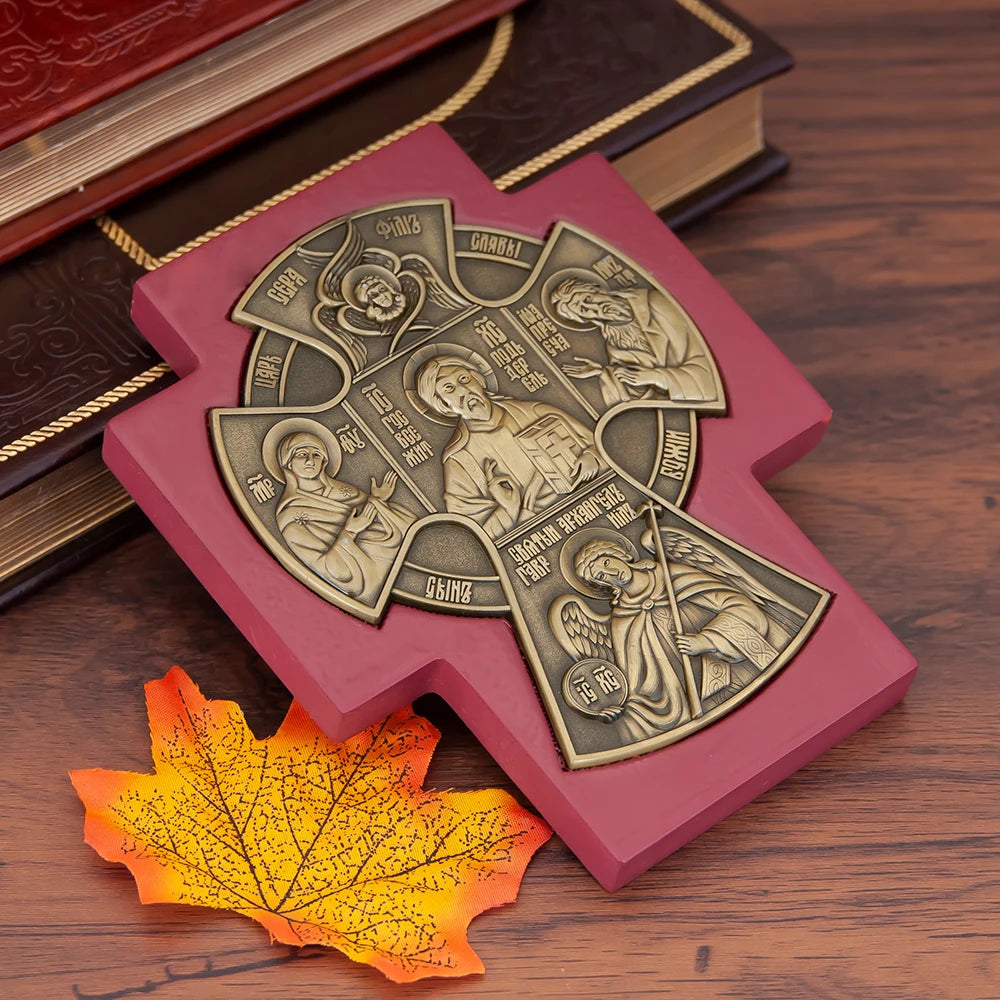 Orthodox Church Icon Metal Jesus Statue Religion Character Image Church Home Wall Hanging Wood Frame Icon