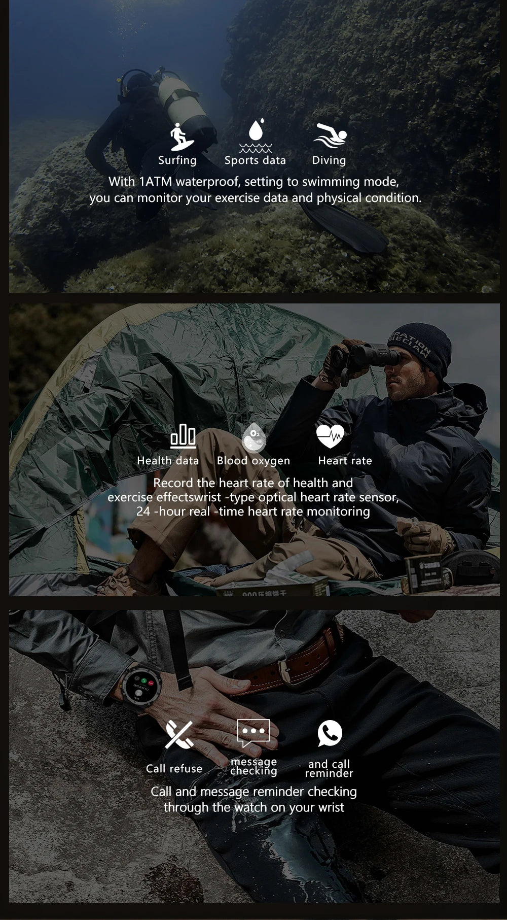 Outdoor Sports Smartwatch Men Fitness Tracker Wireless Call 410mAh Long Standby Time Waterproof Voice Assistant Swimming Watch