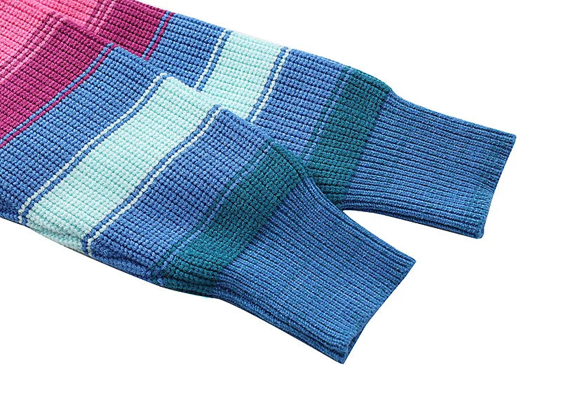Oversized Sweater Women 2025 Fashion Rainbow Striped Embroidered Letters Knitted Pullovers Loose Casual Streetwear Tops C-119