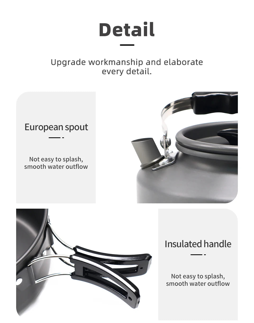 PACOONE Camping Cookware Set Portable Cookware Kit Outdoor Pot Cooking Water Kettle Pan Set Tableware Hiking Picnic Equipment