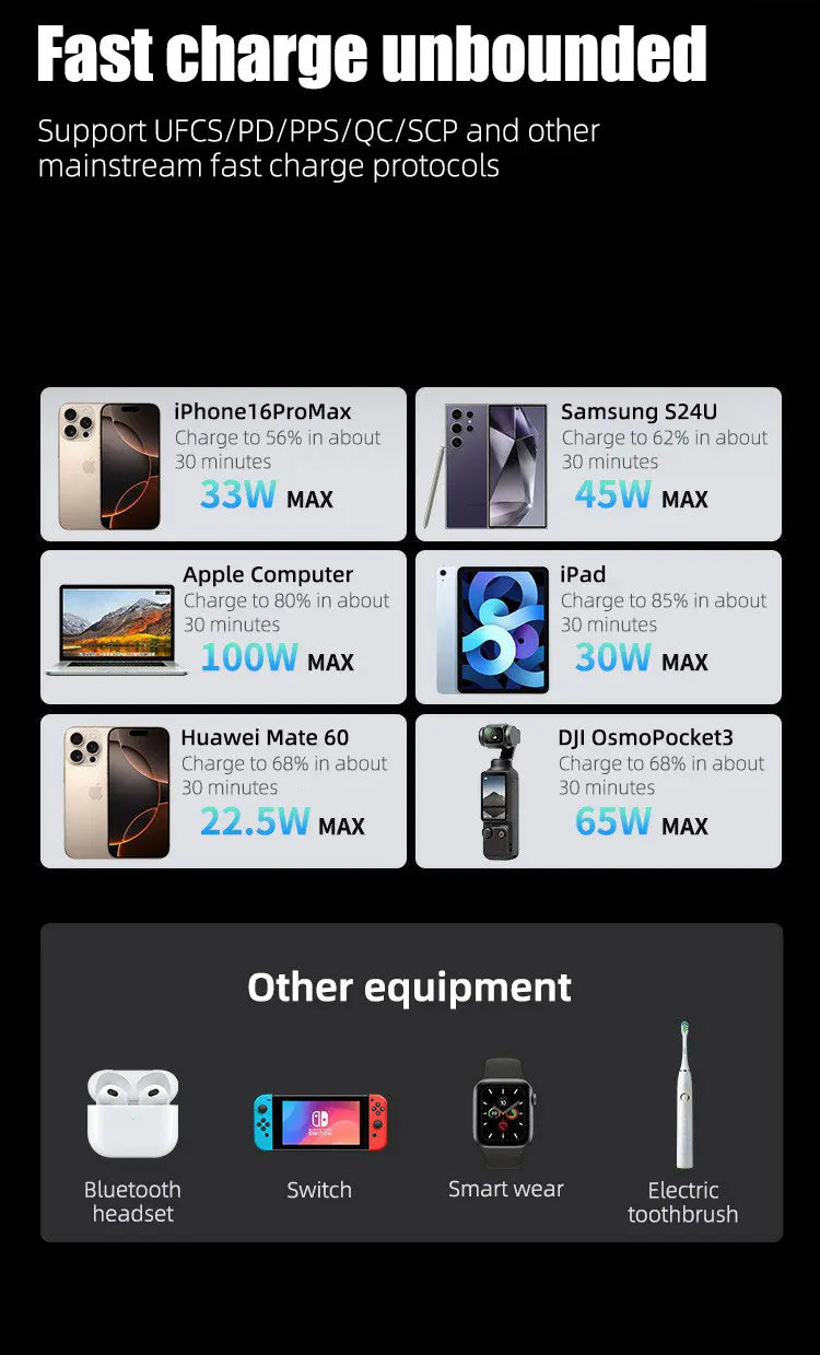 PD100W GaN Power Bank 20000mah/30000mah Build in Line High Definition LED Screen UFCS Phone Laptop Phone Portable Fast Charging