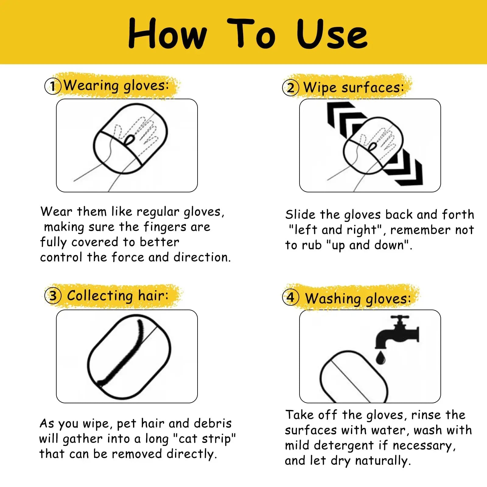 Pet Hair Removal Tool Reusable Static Removal Gloves, Double-Sided Grooming Gloves for Pets, Removes Pet Fur Hair for Carpets