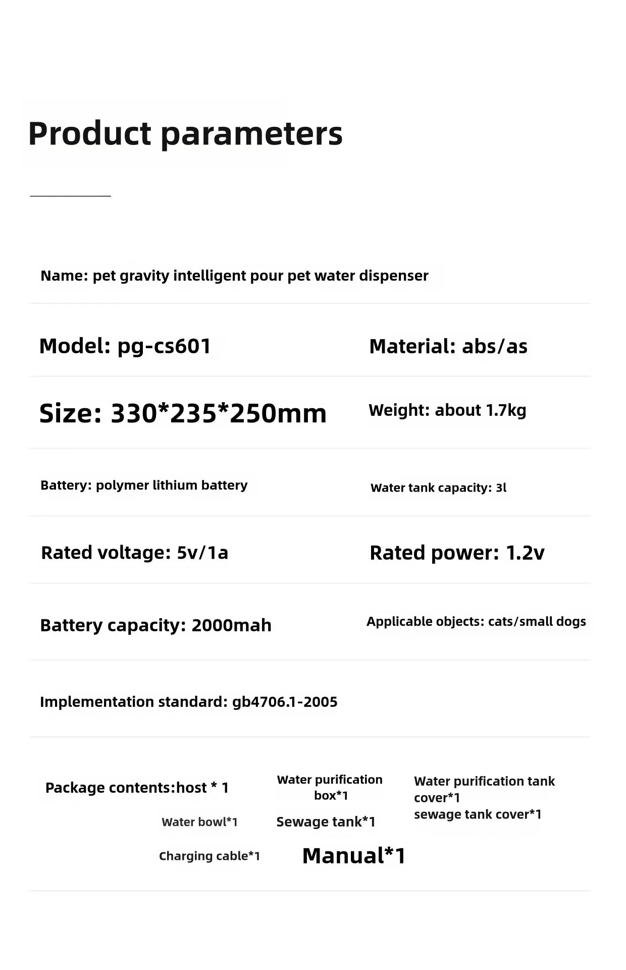 Pet water dispenser, dog and cat water dispenser, dumping cat water dispenser, running water charging automatic water feeder
