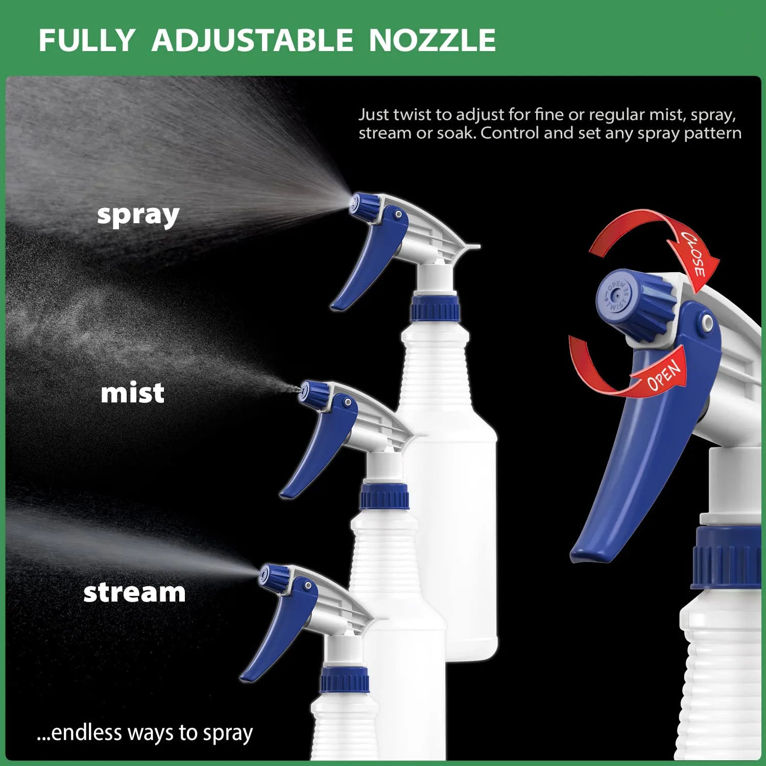 Plastic Spray Bottles, Leak Proof, Empty 16 oz.Cleaning Solutions, Adjustable Head Sprayer Fine to Stream