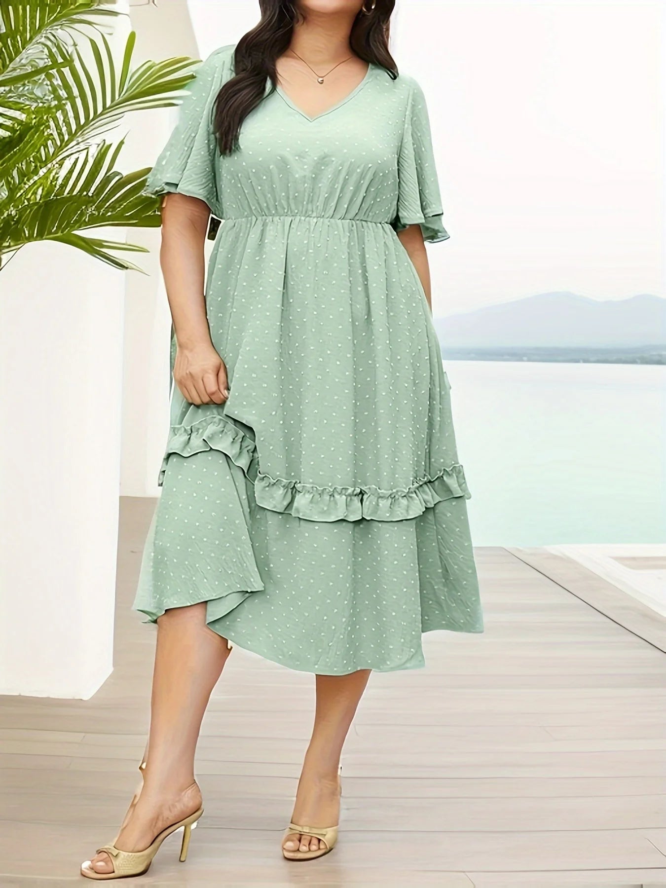 Plus-size spring/summer office commute Wear an elegant dress with pockets and a mint green color that looks cool and comfortable