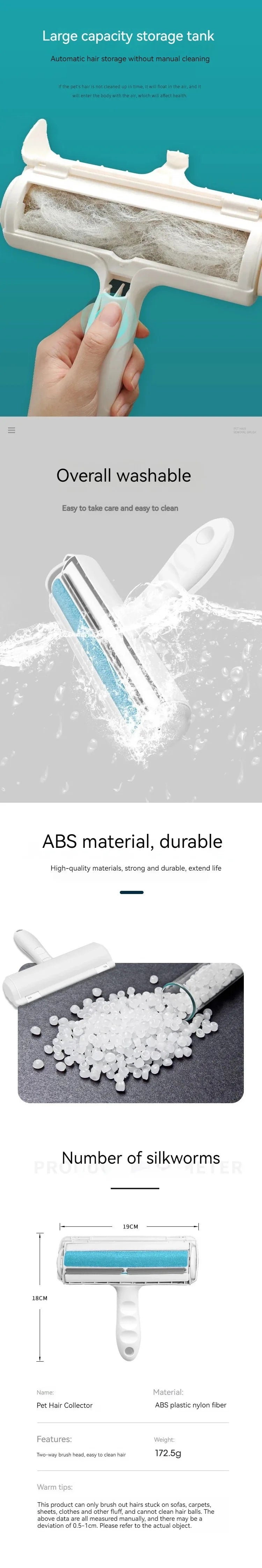 Portability Roller Pet Hair Remover 2-Way Reusable Lint Brush Plastics Furniture Dog and Cat Surface Hair Removal Tool