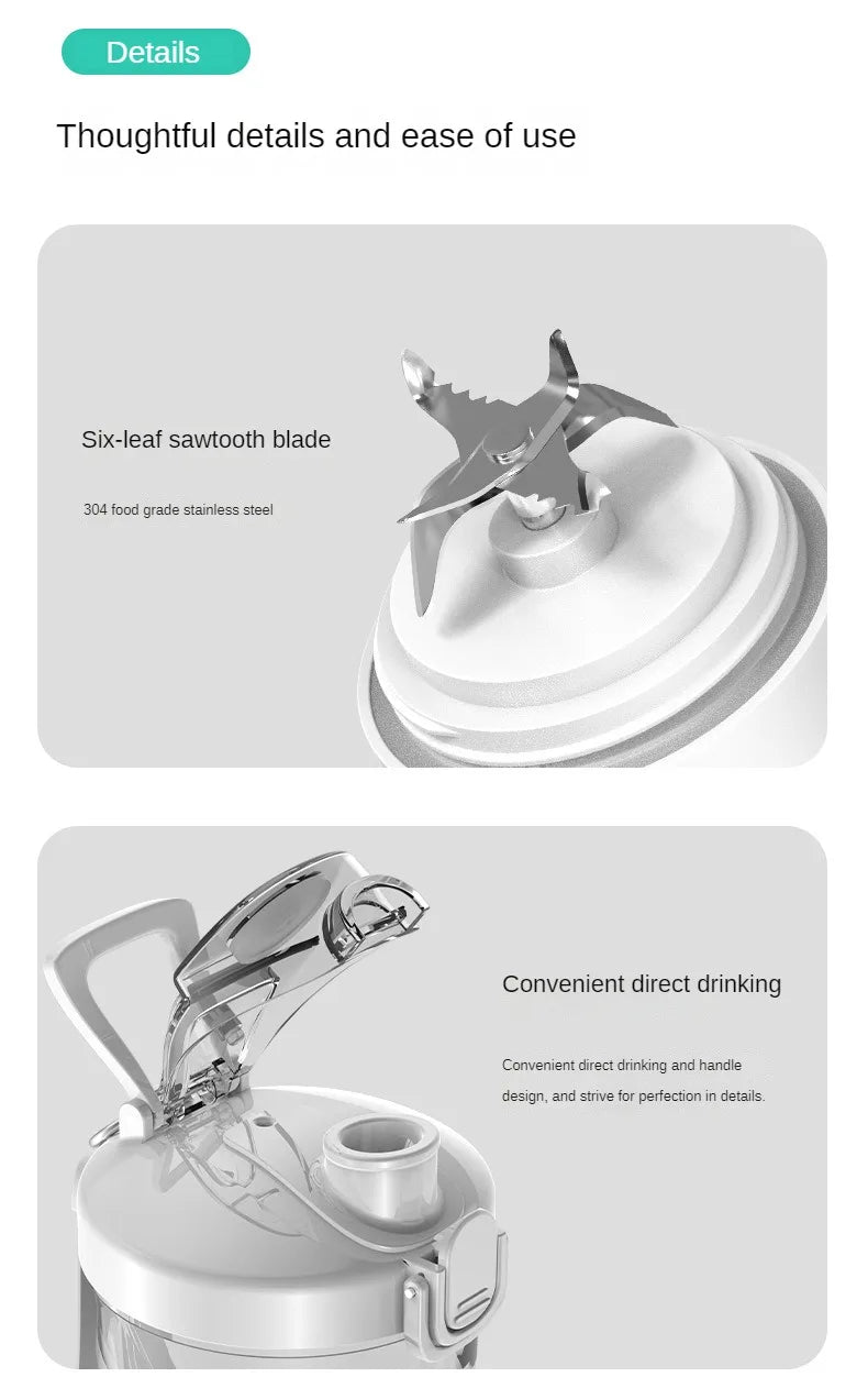 Portable Blender Juicer Multifunctional Usb Charging 600ml Electric Juicer Machine Fresh Fruit Juice Blender Smoothie Cup Bottle