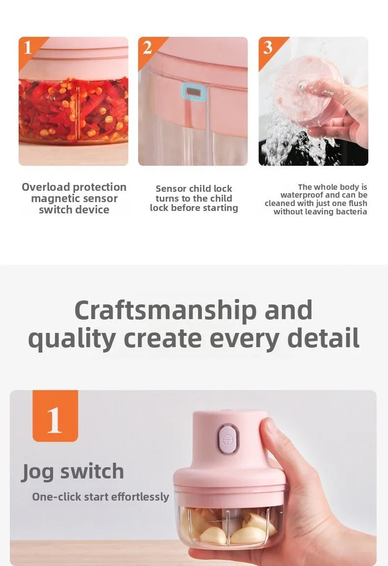 Portable Electric Garlic Chopper 100ml 250ml USB Vegetable Grinder Kitchen Garlic Masher Food Processor Tool
