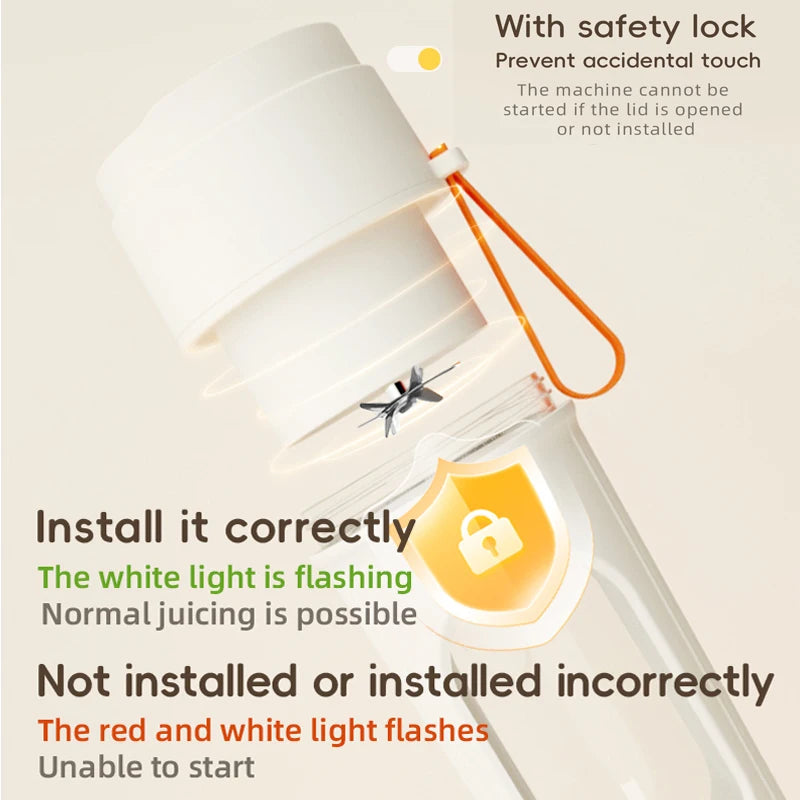 Portable Electric Juicer Blender With Straw 450ML Wreless Juicer Mini Juicing Cup USB Charging 12 Blades Gift Sport Lid