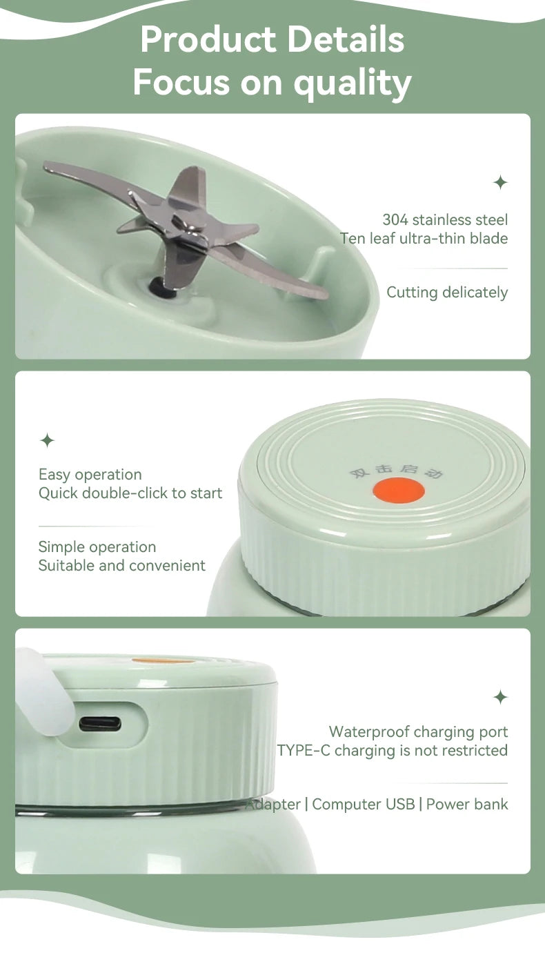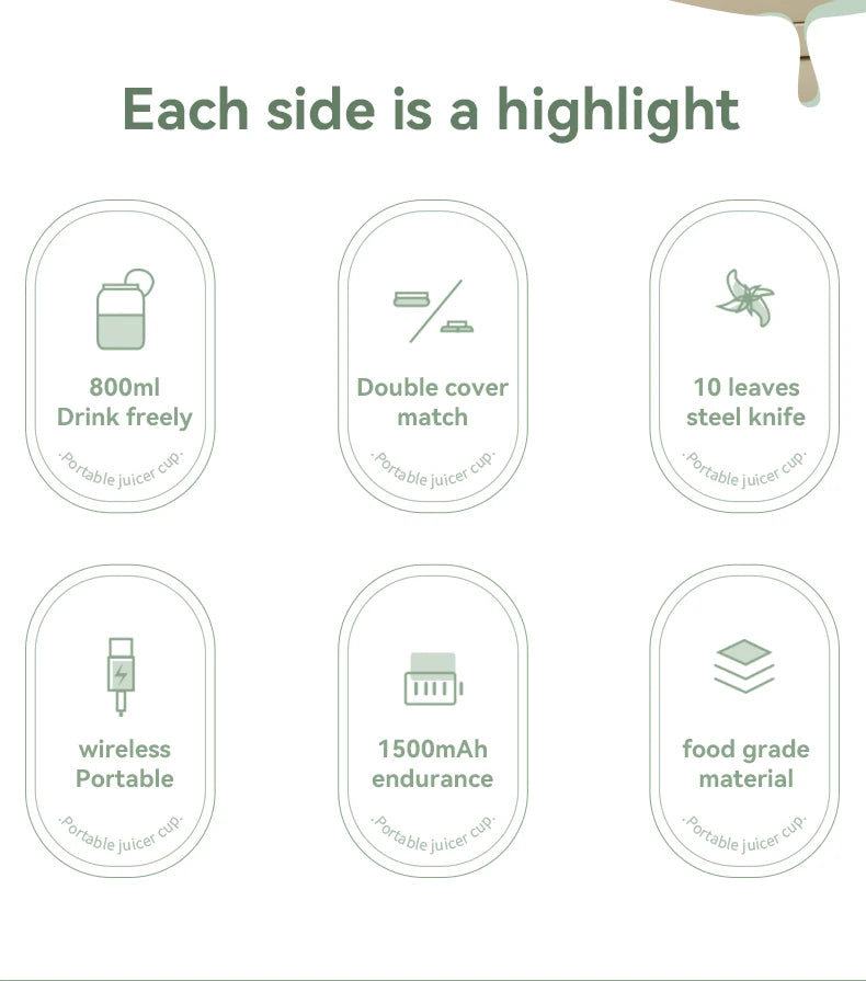 Portable Fruit Blender 800ml Multifunctional Electric Juicer Cup 10 Steel Blades Summer Milkshake Machine USB Rechargeable