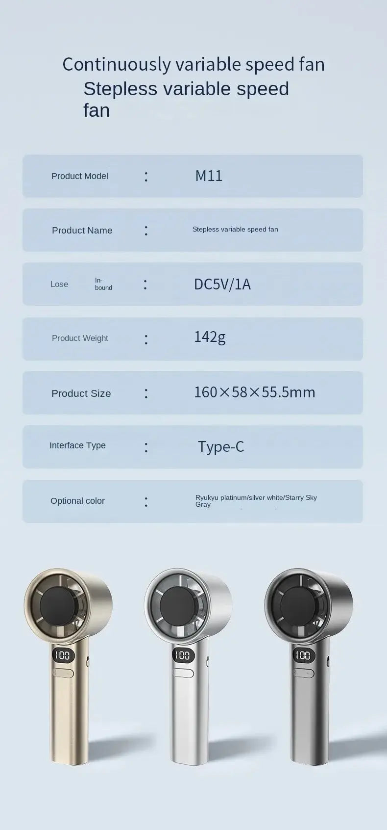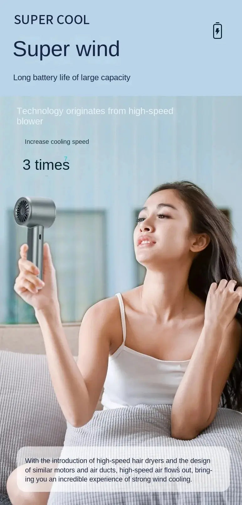 Portable Hand Fan , 120 Wind Speeds, Mini Bladeless Handheld Fan, USB Rechargeable Personal Highspeed Fans, Electric Eyelash Fan