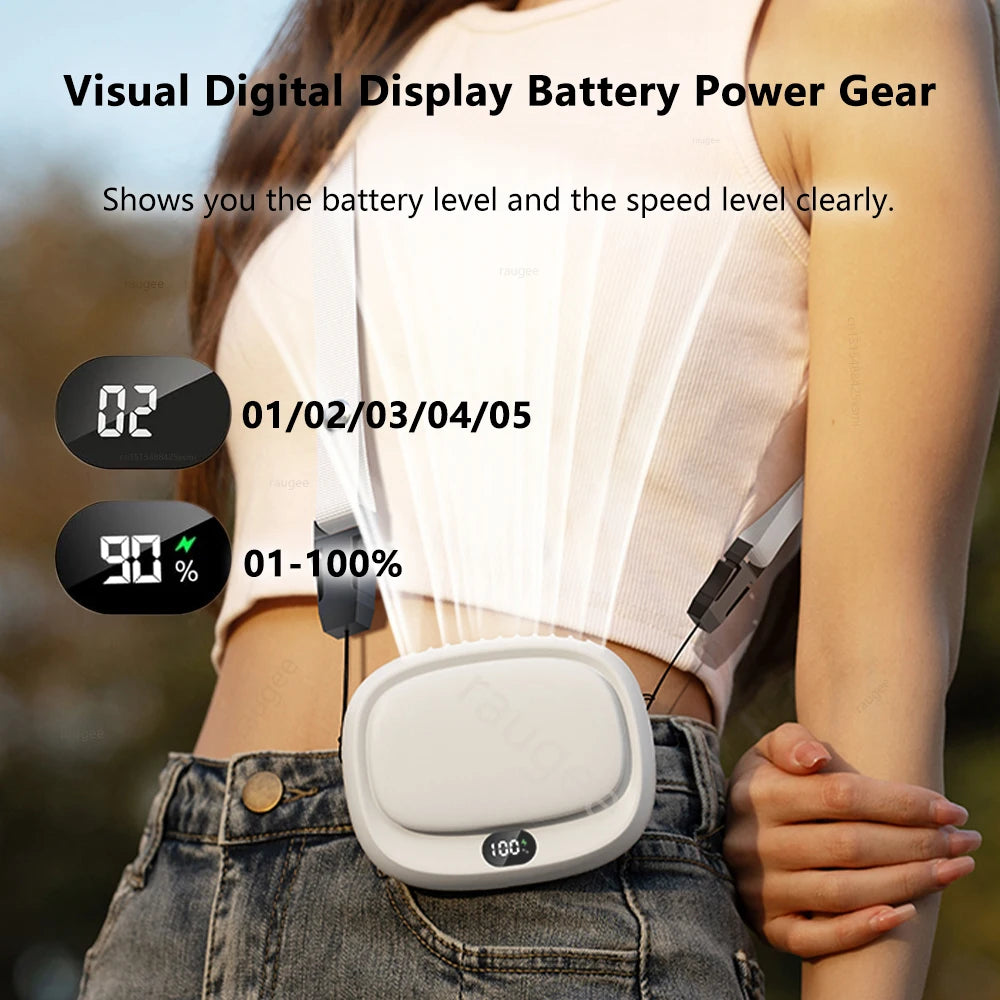Portable Neck Fan Mini Waist Fan USB Rechargeable Bladeless Portable Hanging Neck Fan Wireless Waist Clip Fan for Outdoor Travel