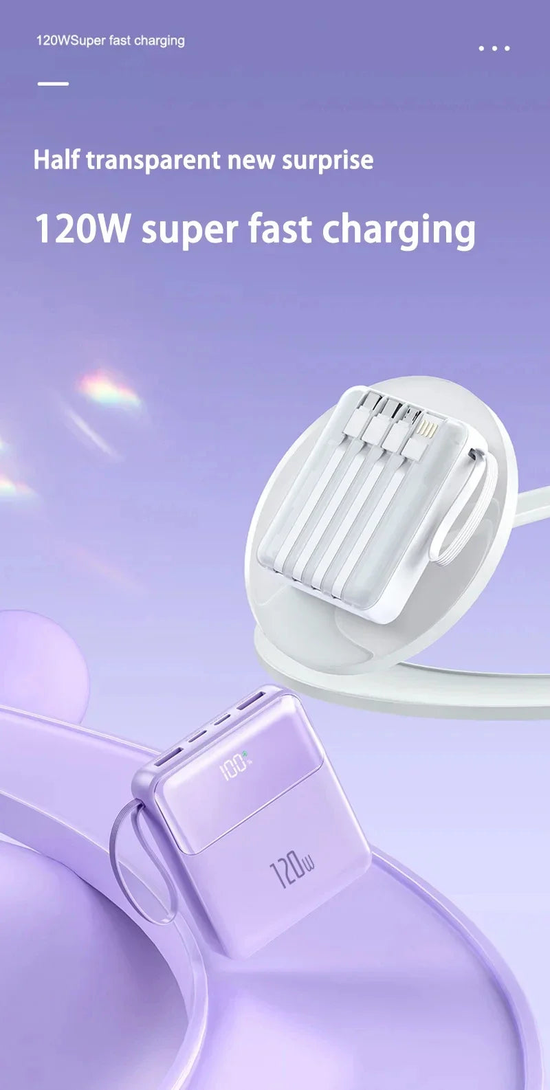 Portable Power Bank 50000mAh 120W Super Fast Charging Mobile External Battery With Four Cable Charger Suitable For iPhone Xiaomi