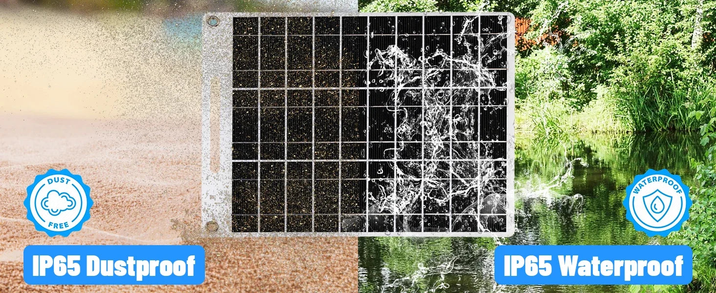 Portable solar power bank with two USB ports, suitable for outdoor camping, charging mobile phones or other electronic devices.