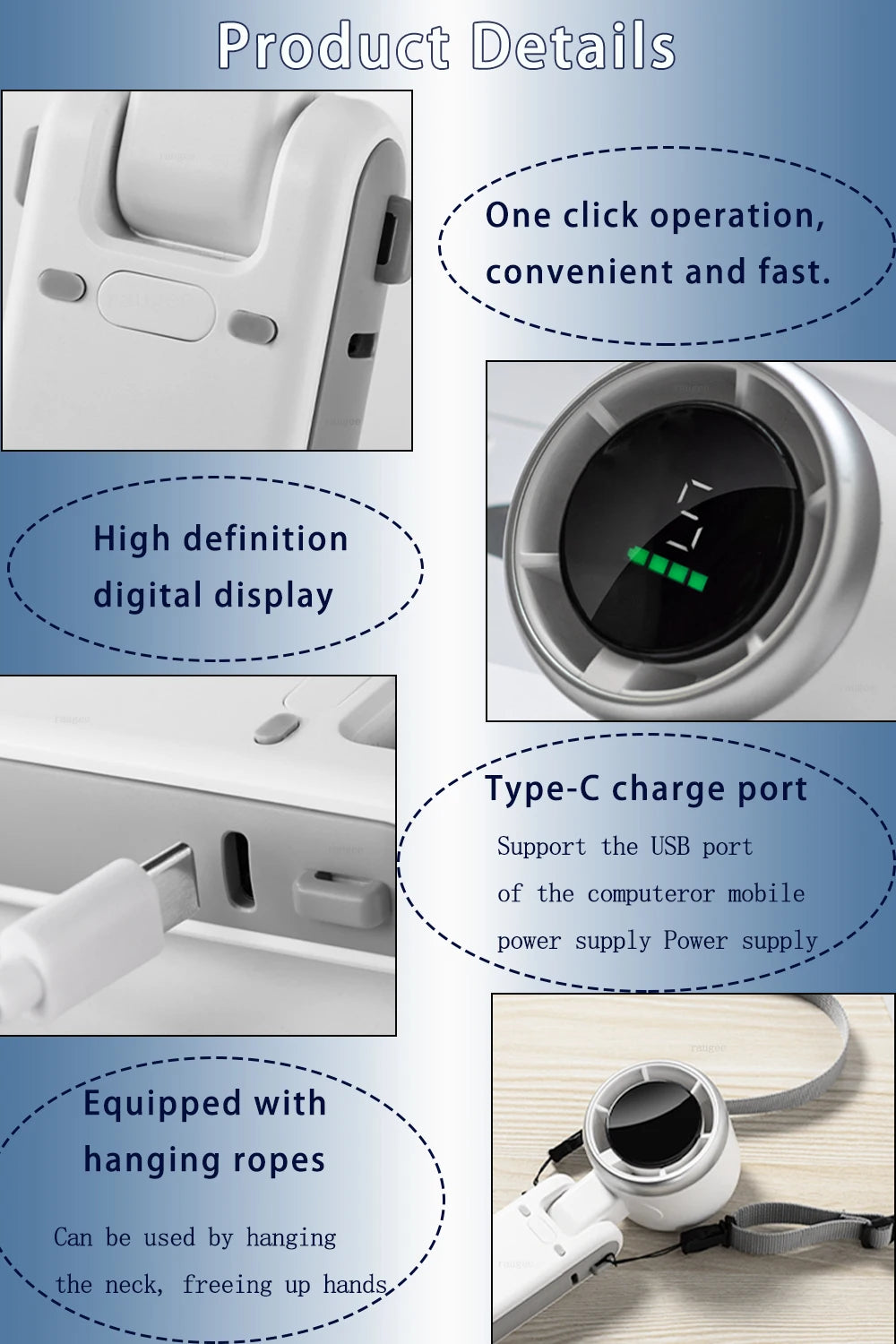 Portable Turbo Fan Mini Hanging Neck Fan USB Rechargeable Handheld Fan 3600mAh Foldable Mini Neck Fan Portable Small Turbo Fan