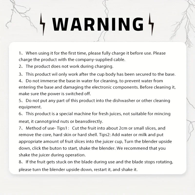 Portable USB Rechargeable Blender &Juicer-Easy to clean for fruit and vegetable drinks, shakes - Capacity 10.14 oz. to 16.91 oz.
