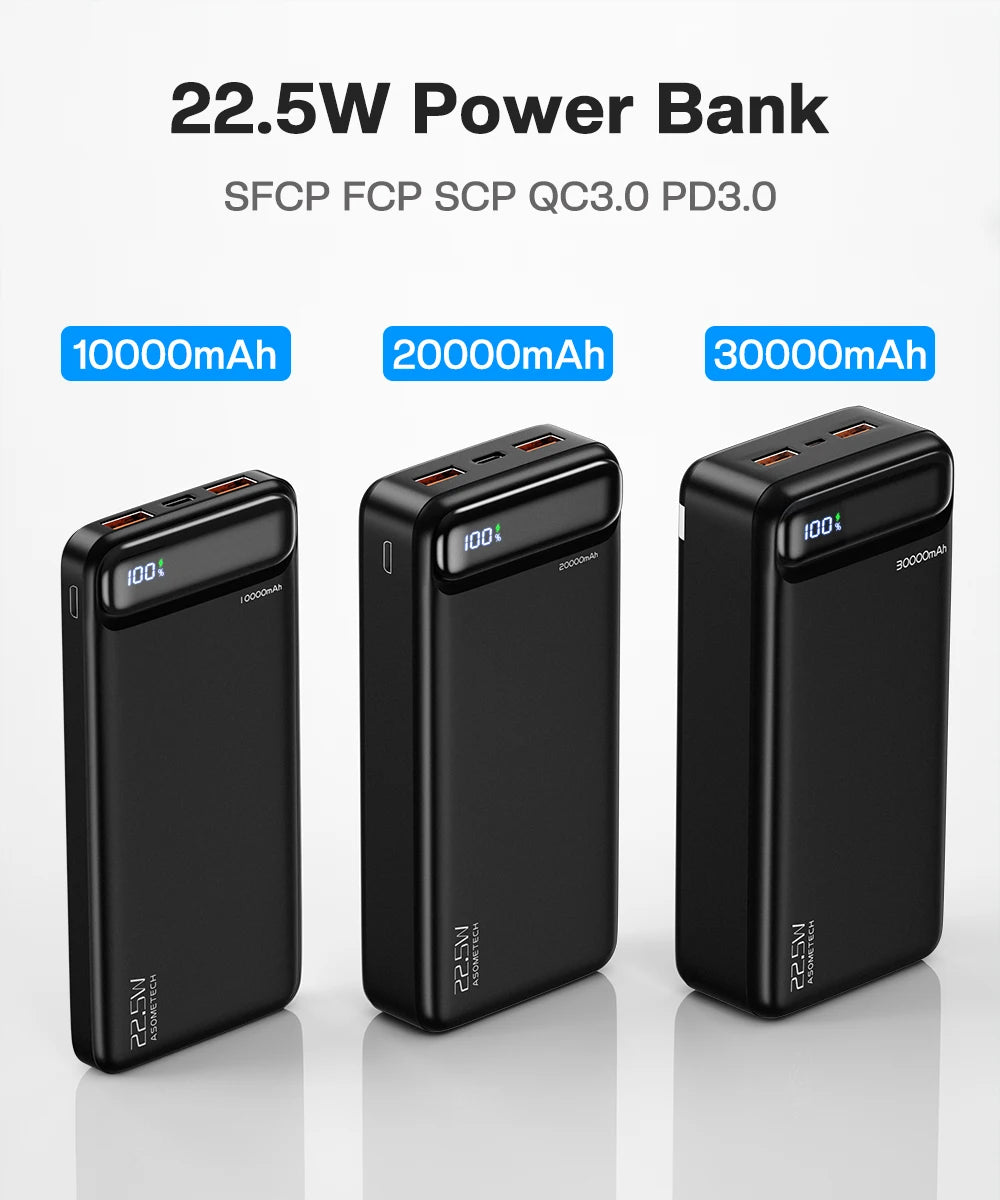 Power Bank 20000mAh 22.5W SCP Portable Charger Powerbank 10000 mAh External Battery PD 20W Fast Charging For iPhone 13 Xiaomi mi
