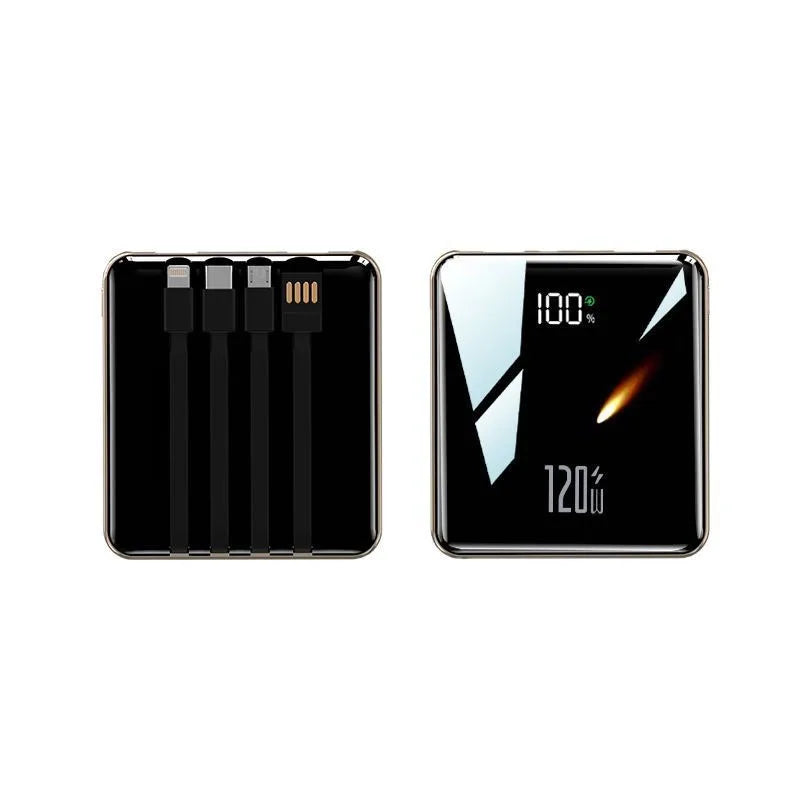 Power Bank 20000mAh Ultra Thin Portable Charger with Built-in Cable Large Capacity Super Fast Charging Powerbank for Smartphones