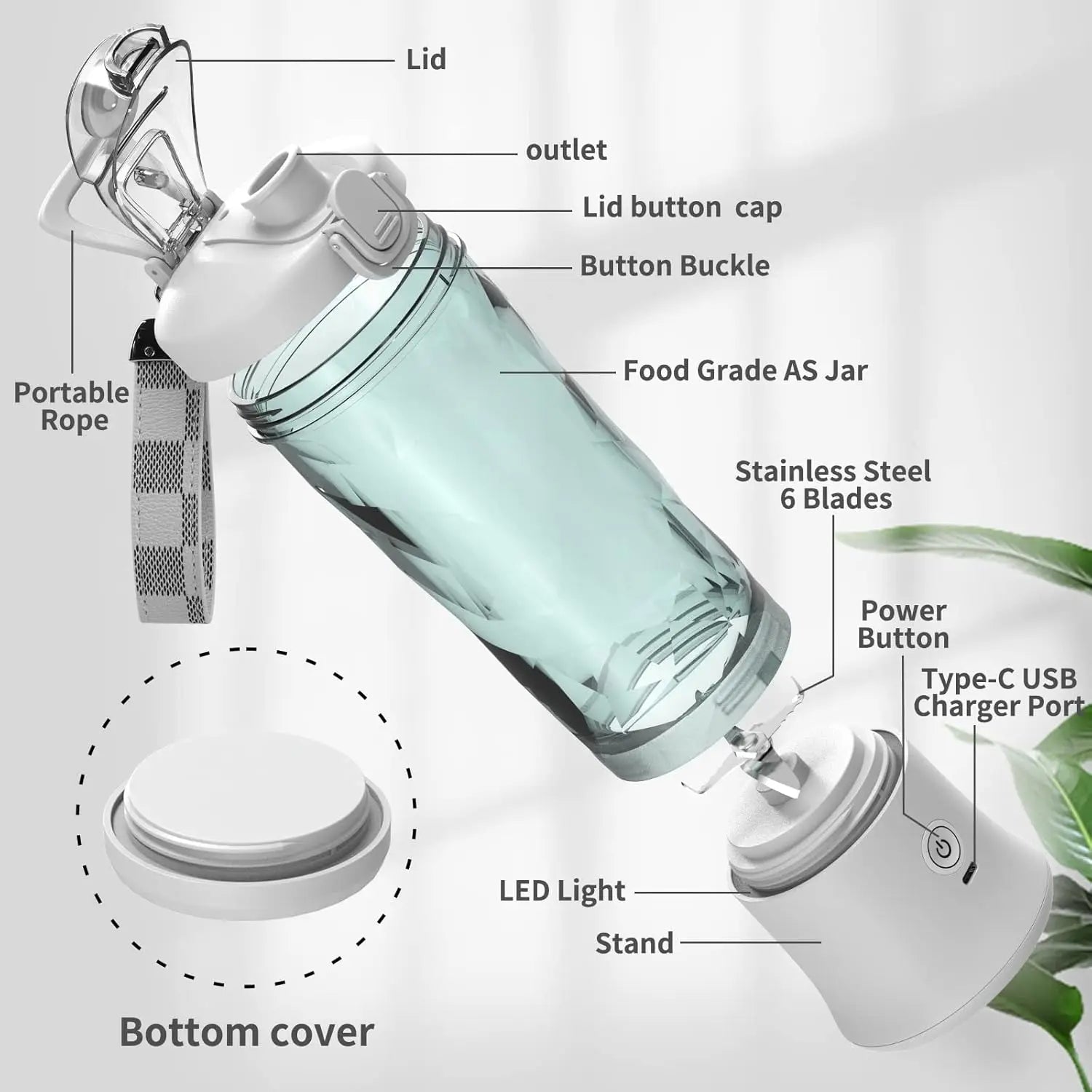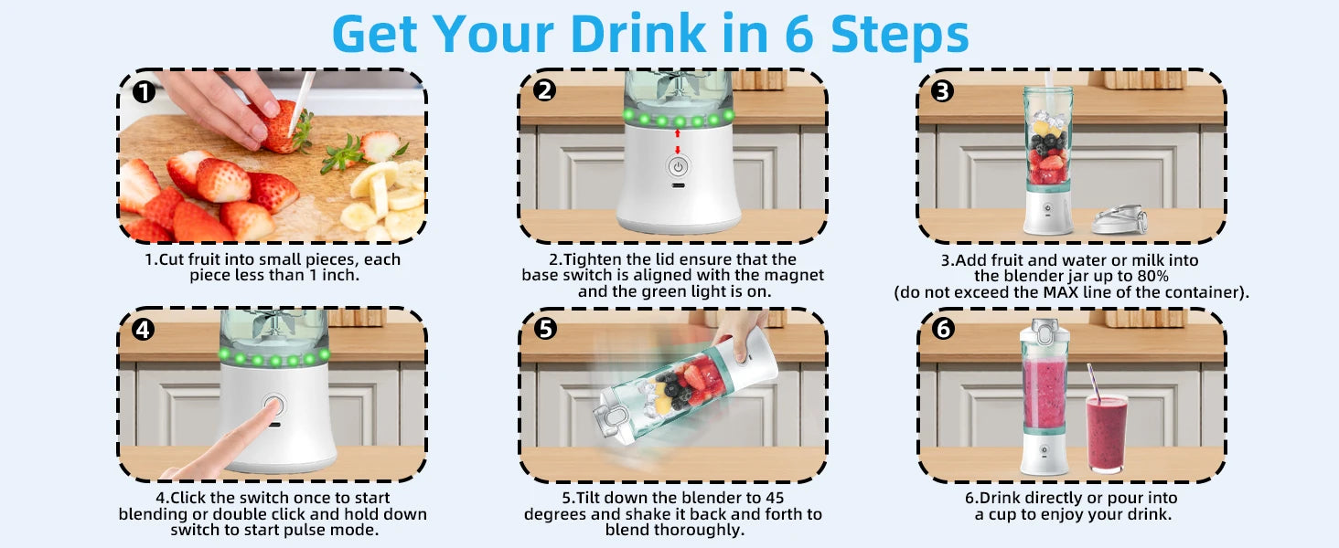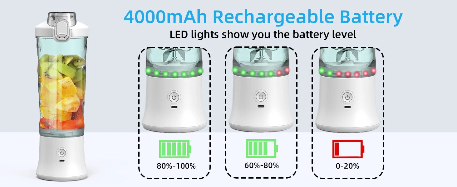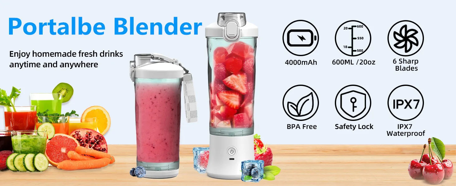 Powerful 20 oz Personal Portable Blender BPA Free USB C Rechargeable Blender with Travel Lid for Shakes Smoothies Home Travel