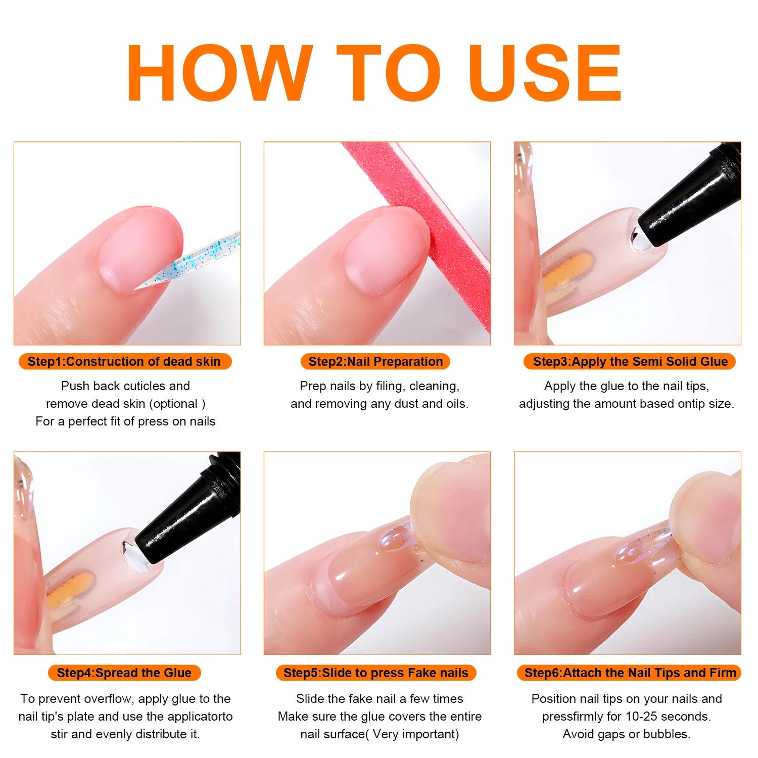 Quick-Dry Nail Glue,Semi solid Super Strong Adhesive For Press-On Nails&Rhinestones Long-Lasting,Fake Nail, No need UV Cured