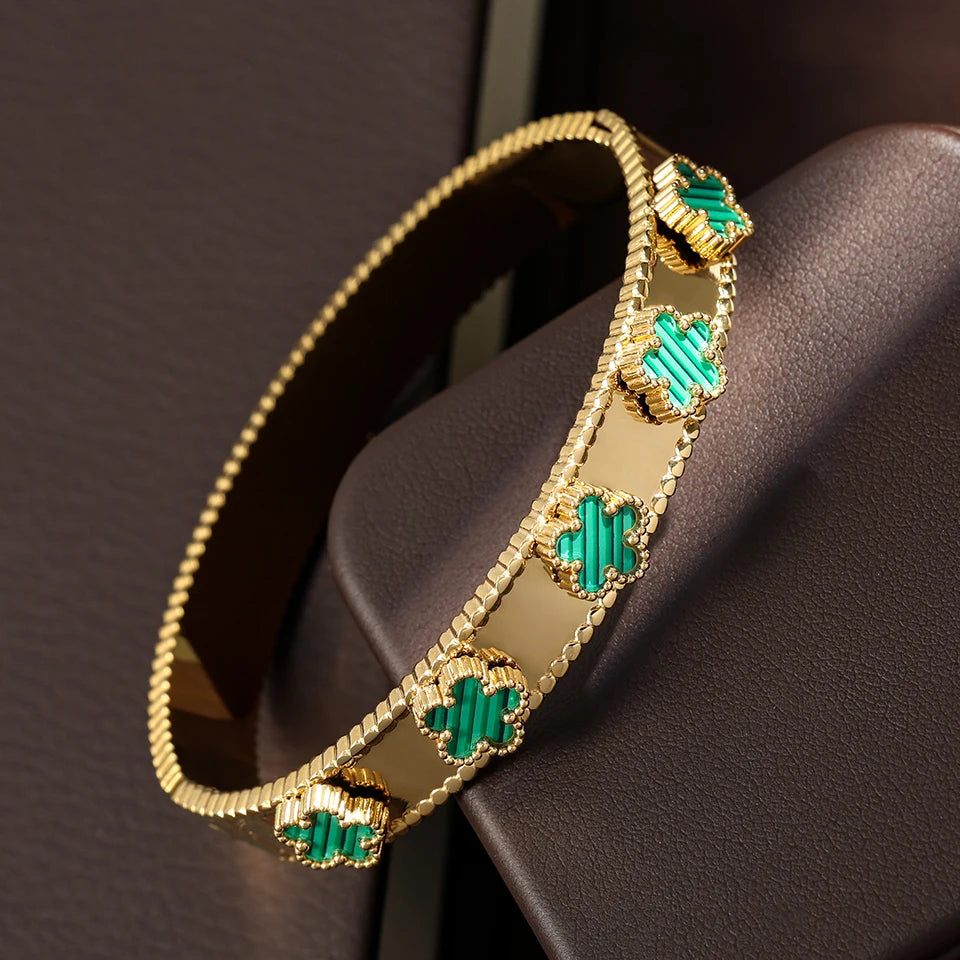 RAKOL Miniamlist 316L 18k Gold Plated Flower Bracelet Plum Blossom Cuban Chain Bracelets For Women Daily Workday Jewelry Gift