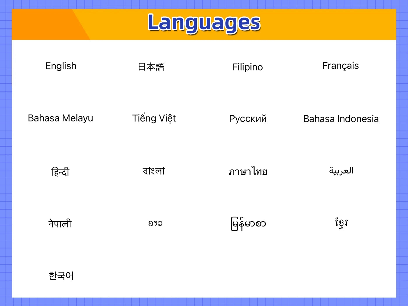 Language: Arabic,Russian,French,Korean,Japanese,English,English,Korean,Japanese,Arabic