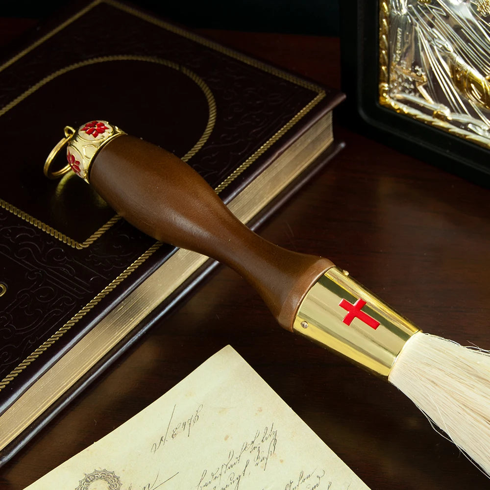 Religious Mass Ritual Supplies Alloy Craved Metal Gold-plating Church Sprinkler With Artificial Wool Church Ornament