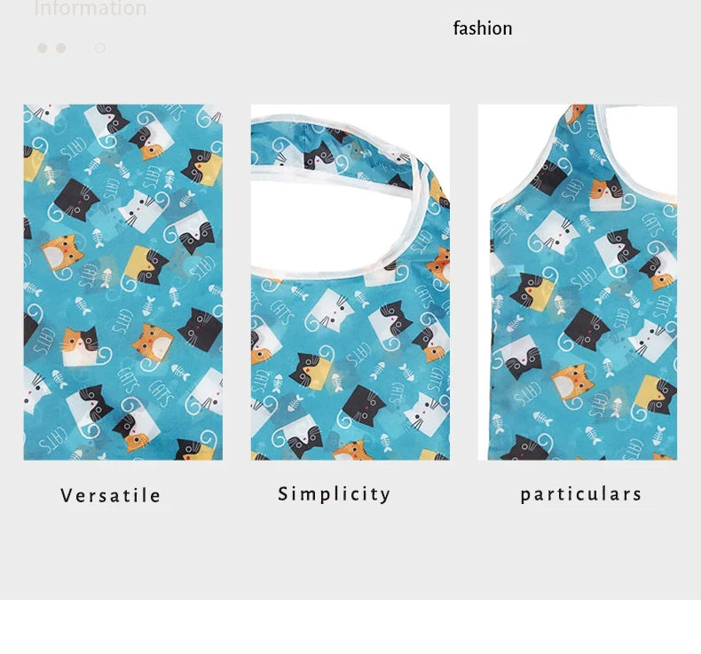 Reusable Shopping Bag Nylon Foldable Grocery Bag Creative Eco-Friendly Tote Bag Lightweight and Durable