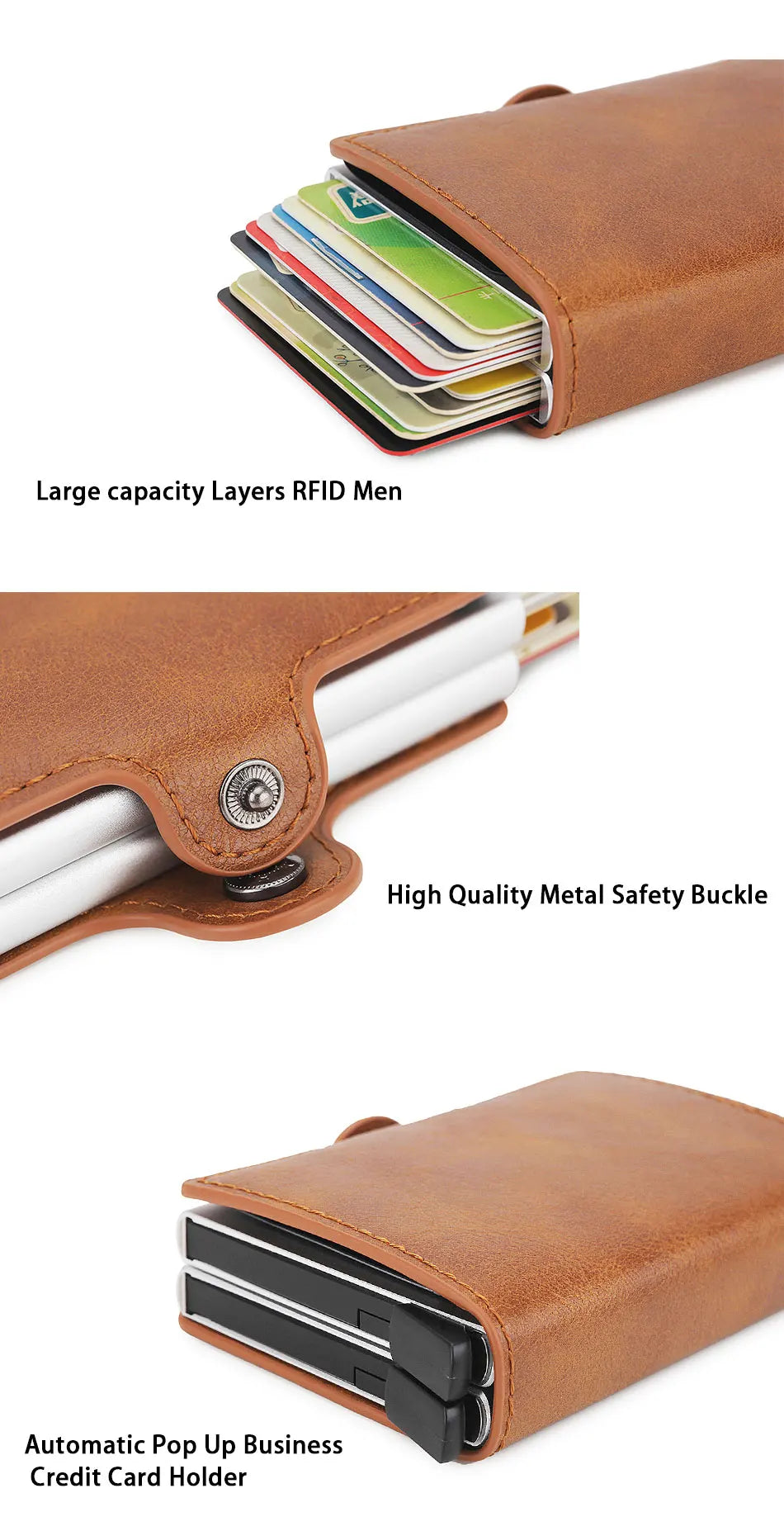 RFID Blocking Men Wallet Credit Card Holder Leather Card Wallet Double Metal Box ID Card Holder Money Clip Purse New 2023