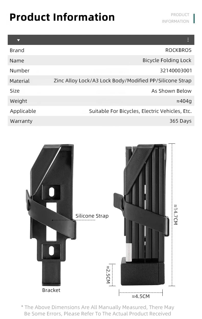 ROCKBROS Bike Lock Electric Bicycle Motorcycle MTB Road Bike Portable Anti-Theft Folding Password Lock Cycling Accessories