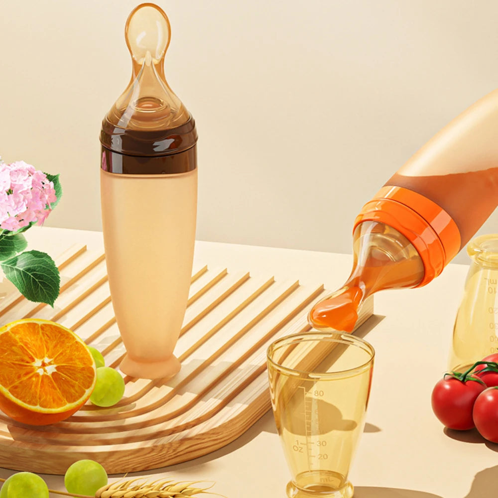 Safe Useful Silicone Baby Bottle with Spoon Food Supplement Rice Cereal Bottles Squeeze Spoon Milk Feeding Bottle Cup